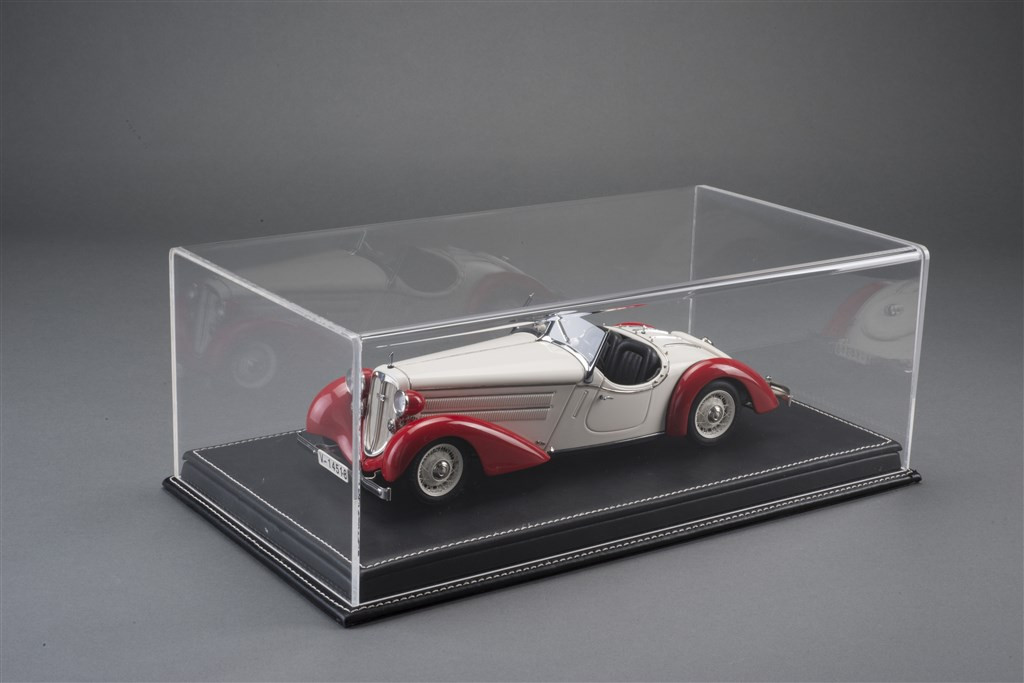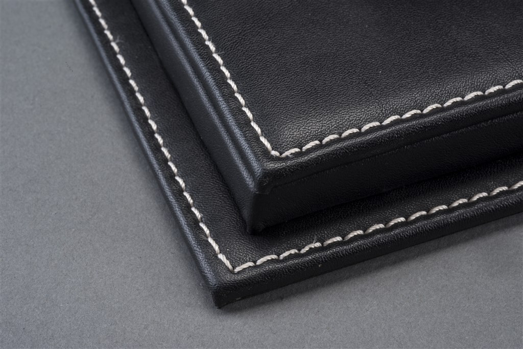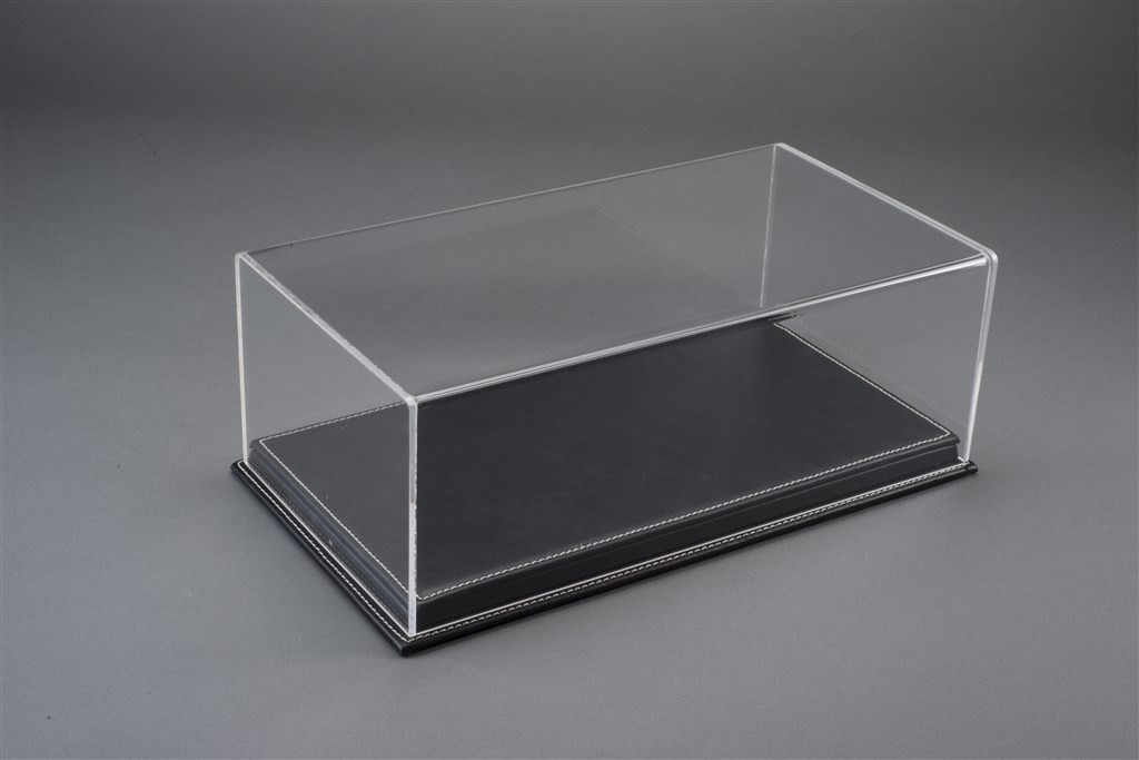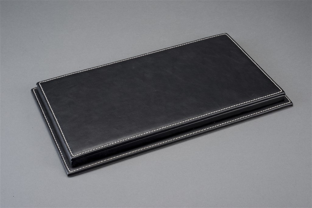 Popis produktu: Materiál - černou kůží potažený podklad, akrylátový kryt. Velikost: podklad - 347x178x20 mm, vrchní kryt - 326x166x119 mm.