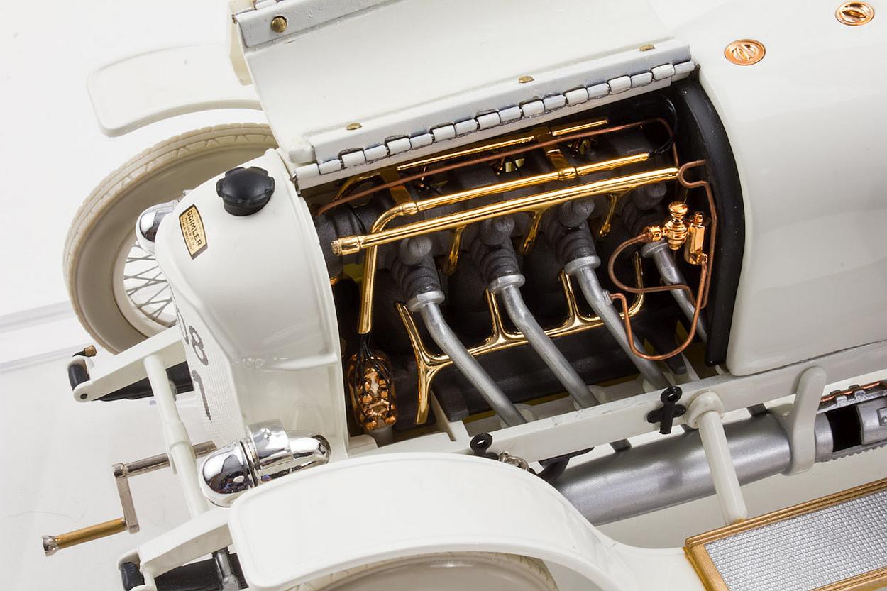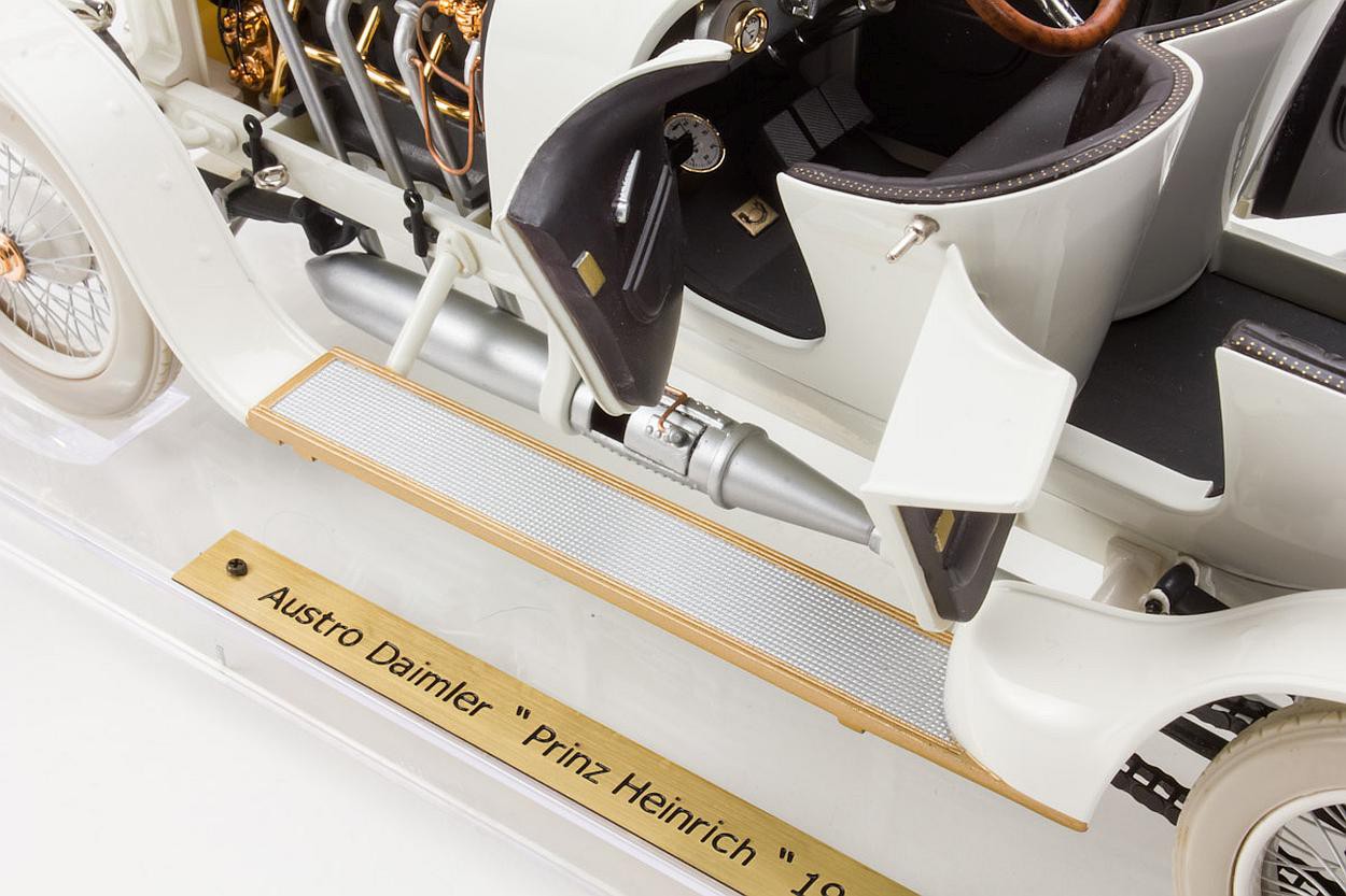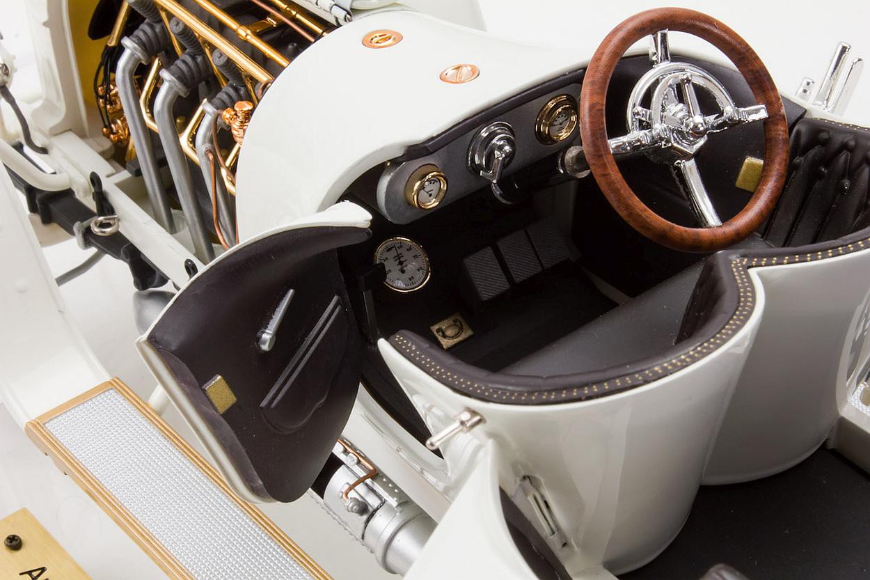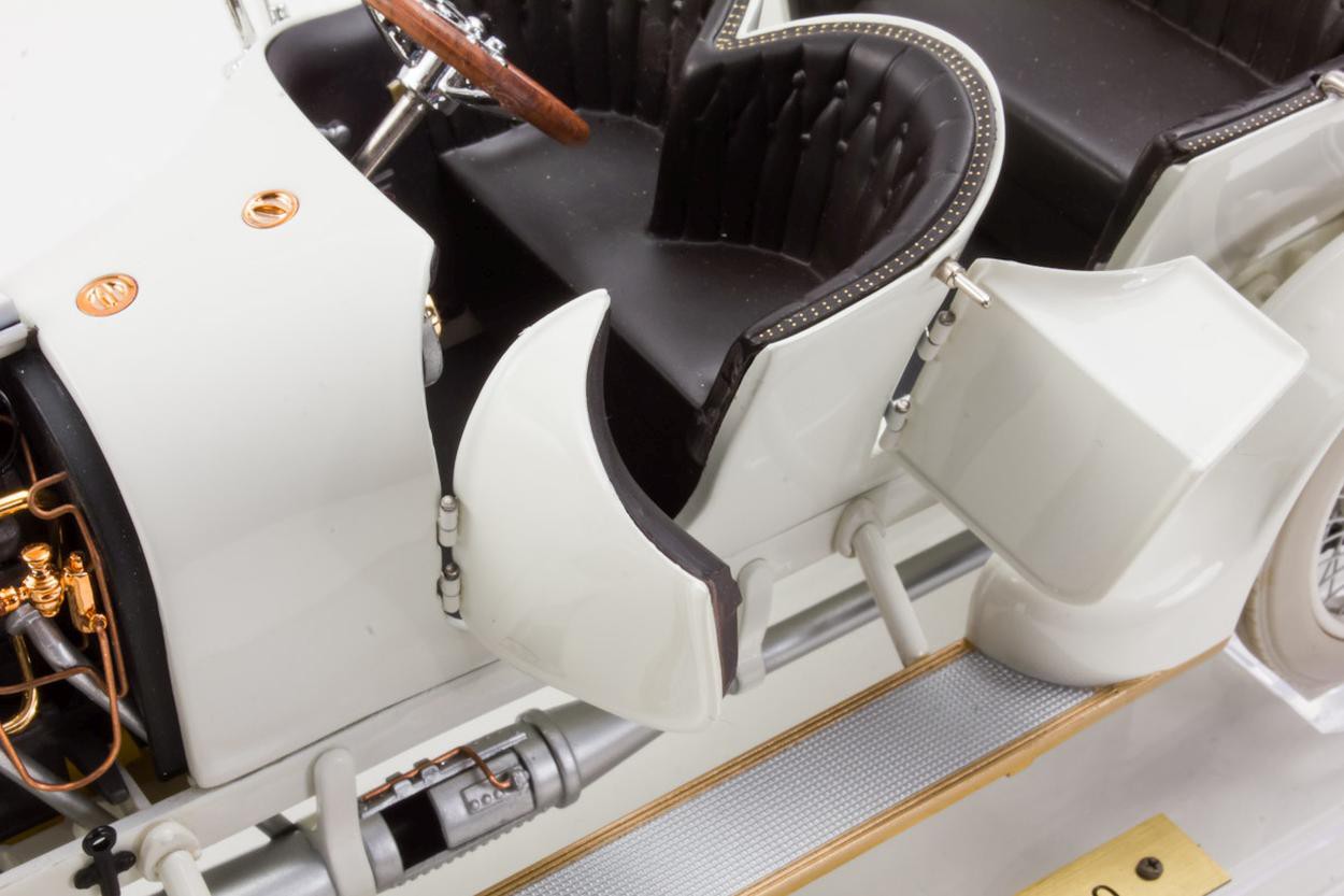 Popis modelu: Model je vyroben z plastu. Je dodáván se složenou střechou a průhledným akrylátovým podstavcem se štítkem a akrylátovým krytem. Má funkční řízení, otevíratelné dveře a kapotu. U modelu je též přibalena plátěná střecha ze skutečné látky.