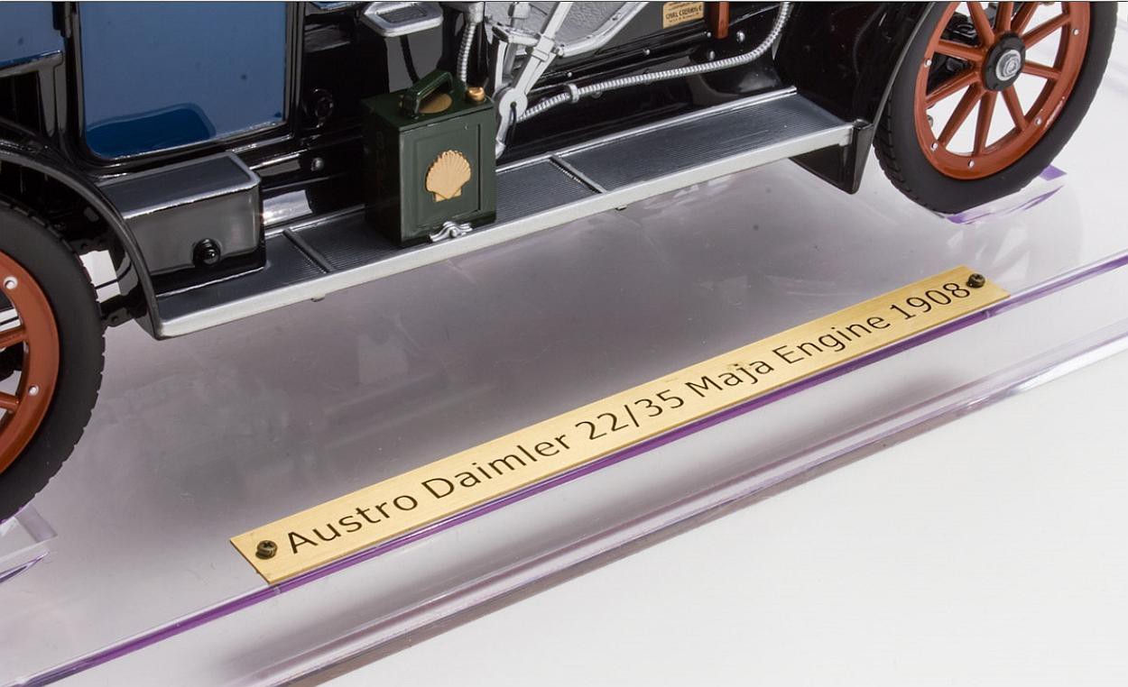 Popis modelu: Model je vyroben z plastu. Je dodáván s průhledným akrylátovým podstavcem se štítkem a akrylátovým krytem. Má funkční řízení, otevíratelnou kapotu a dveře.