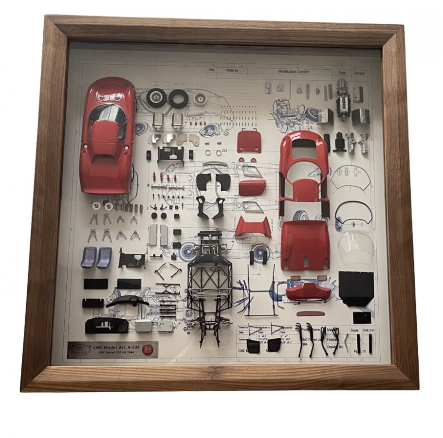 Popis modelu: Rám s rozloženým modelem Ferrari 250 LM. Účelem je kromě dekorace ukázat, z kolika dílů je model sestaven a co vše je ve skutečnosti skryto pro běžné pozorování. Sestava by měla být namontována na koženou desku s hliníkovým rámem, vše by mělo být zakryto akrylátovým krytem, jako ochranou proti prachu.