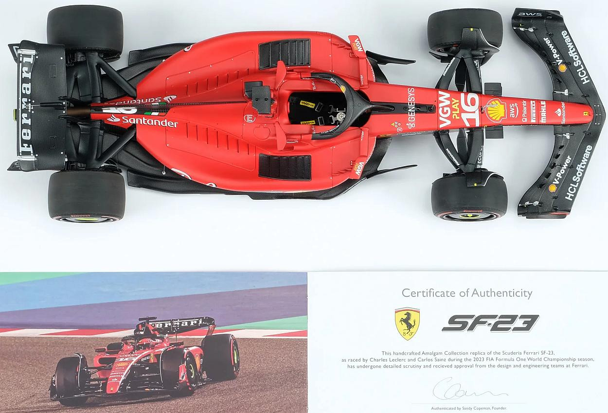 Tento model v měřítku 1:18 představuje vůz Ferrari SF-23, s nímž závodili Charles Leclerc během mistrovství světa FIA Formule 1 v roce 2023. Model byl vyroben ve spolupráci a s pomocí Scuderia Ferrari, pokud jde o originální CAD data, povrchové úpravy a kódy laků. Kromě toho prošel podrobnou kontrolou jak technických, tak i konstrukčních týmů, aby byla zajištěna naprostá přesnost zobrazení.