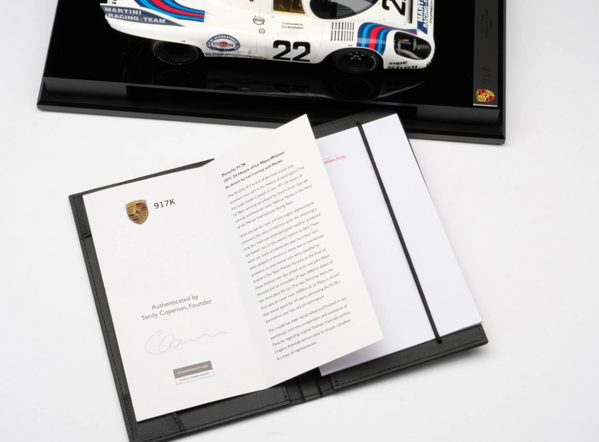 Tento model Porsche 917 KH vychází z vozu s číslem 22, který v roce 1971 dovedli k vítězství nizozemský jezdec Gijs van Lennep a rakouský závodník Helmut Marko v závodě 24 hodin Le Mans. S blížícím se zákazem vjezdu pro vozy s objemem motoru nad 3,0 litru se závod proměnil v labutí píseň; dlouhá, rychlá trať a dlouhodobě dobré počasí vedly k nejrychlejšímu závodu v dosavadní historii této akce.Toho roku nedošlo k mnoha nehodám, ale mnoho vozů se zpozdilo nebo bylo nuceno odstoupit kvůli mechanickým problémům, takže do cíle bylo klasifikováno pouze dvanáct vozů. Tým Martini Porsche na čele těchto vozů doběhl o dvě kola před svým rivalem Johnem Wyerem Porsche a o neuvěřitelných 29 kol (386 km) před třetím Ferrari. Oba vozy Porsche byly prvními vozy, které v Le Mans urazily více než 5000 km, což byl rekord, který platil 39 let a upevnil tak dominanci vozu 917K v této éře motoristického sportu.