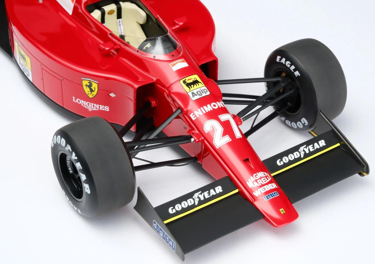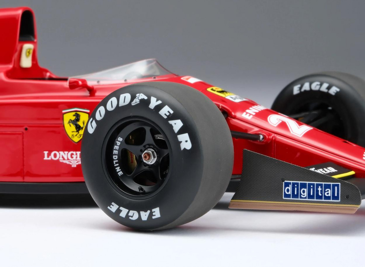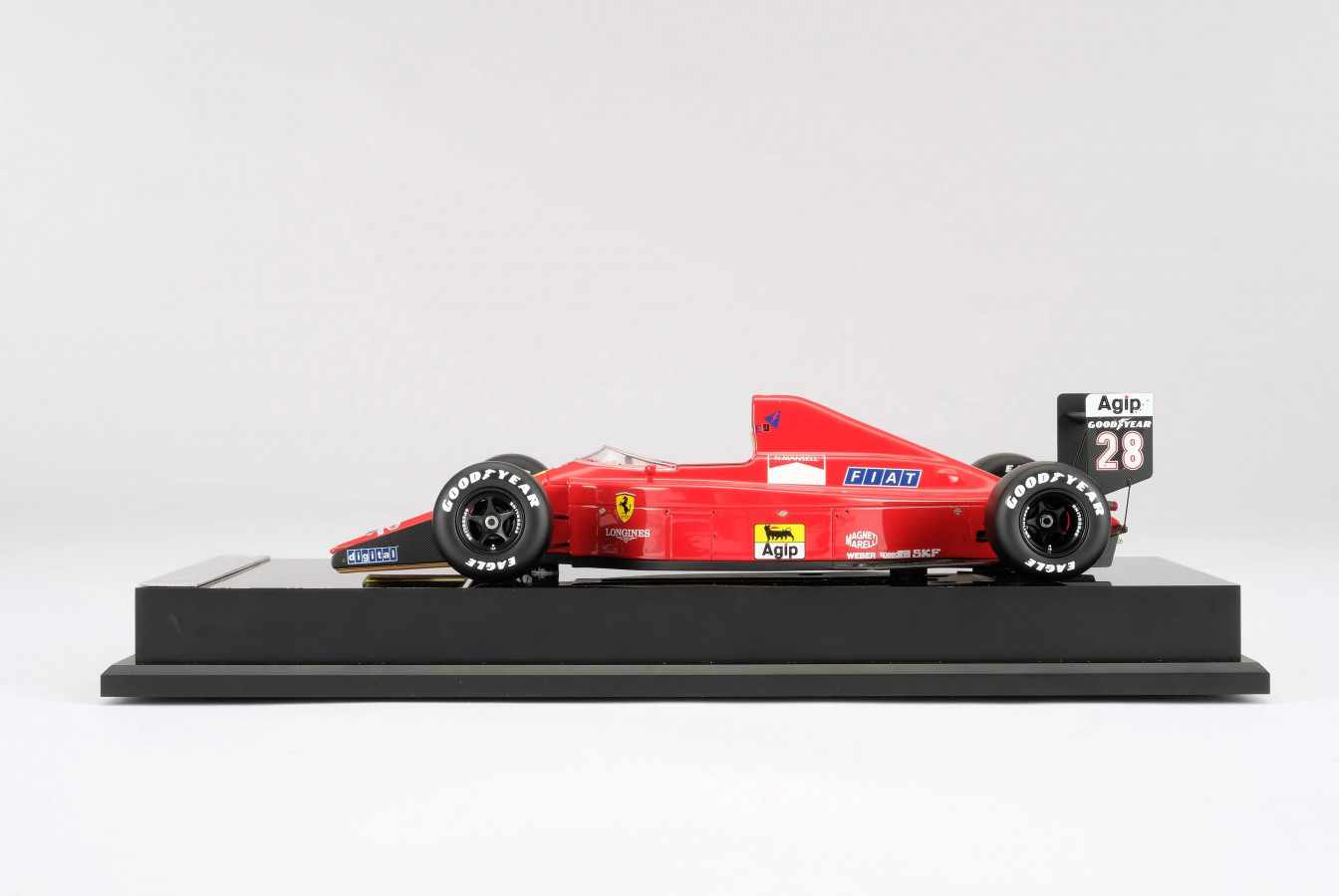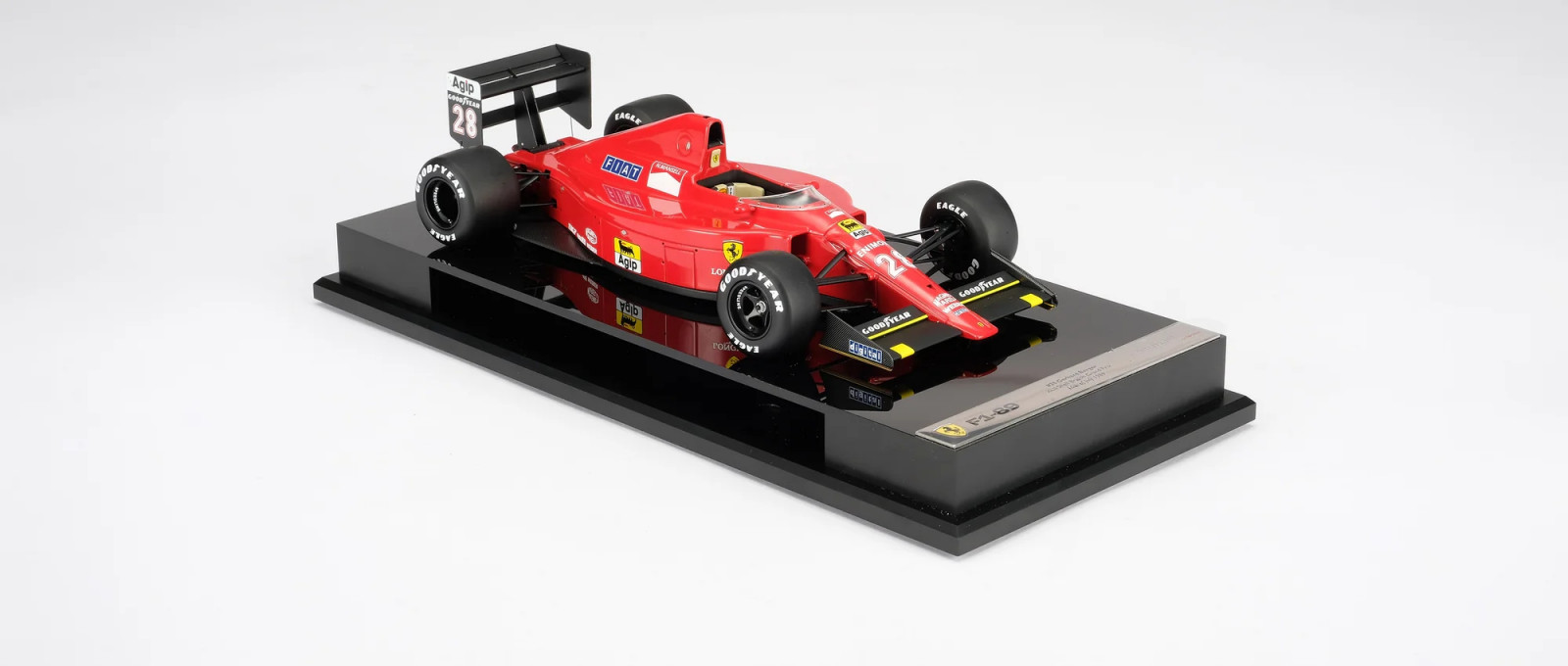 Tento model v měřítku 1:18 pochází z Ferrari F1-89, na kterém závodili Nigel Mansell a Gerhard Berger během XLII Shell British Grand Prix na okruhu Silverstone 16. července 1989. Mansell se kvalifikoval na třetím místě v Silverstone a Berger byl čtvrtý za ním. McLareny Ayrtona Senny a Alaina Prosta. Dvojice Ferrari odstartovala závod čistě a nechala své hlavní soupeře bojovat do první zatáčky. Berger zajel do boxů s elektrickými problémy a o několik kol později se vrátil do závodu. Senna se dostal do štěrku na nájezdu na Becketta ve 12. kole kvůli problémům s výběrem převodovky, díky čemuž se dostal Prost do vedení a Mansell na druhé místo. Vedoucí dvojice zvýšila svůj náskok před zbytkem pole, Prost si udržel nepatrný náskok před britským závodníkem. Ve 42. kole se Mansellovi propíchla pravá přední pneumatika, což ho přinutilo zajet do boxů, což Francouzovi poskytlo plnou výhodu. Prost měl zpoždění na své vlastní plánované zastávce v boxech, ale vrátil se na trať se zdravým náskokem před Mansellem. Prost dosáhl šachovnicového praporku 19 sekund před Mansellem a na stupně vítězů završil další 29 sekundový náskok na Benettona Alessandra Nanniniho. Berger nakonec odstoupil ve 49. kole s mechanickým problémem.