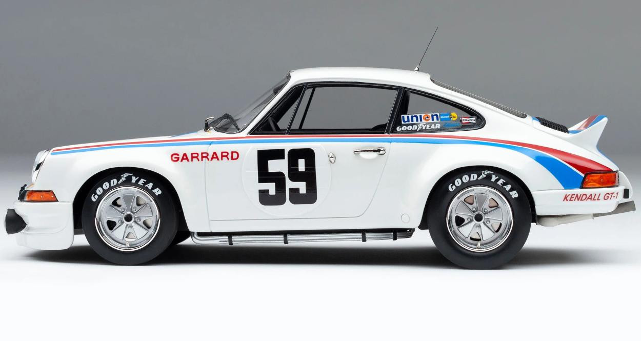 Tento pěkný model v měřítku 1:18 je dokonalou replikou podvozku Porsche 911 RSR 2.8 z roku 1973 911.360.0328, který Hurley Haywood a Peter Gregg dojeli k vítězství ve 24 hodin Daytona na Daytona International Speedway 3. a 4. února 1973. Brumos Racing #59 a jeho sesterský vůz, Penske Racing #6, byly prakticky prototypy, první karoserie 911 RS s experimentálním motorem RSR, převodovkou a zavěšením byly testovány společnostmi Singer a Porsche, než je uvedly na trh ve zbytku světa. týmy. Vůz ještě nebyl homologován FIA, a tak běžel ve třídě prototypů bez očekávání, že zvítězí nad svými oddanými jednomístnými rivaly. Ve skutečnosti bylo prioritou vedení nepoškodit vozy, zajistit řádnou analýzu a testování po závodě.