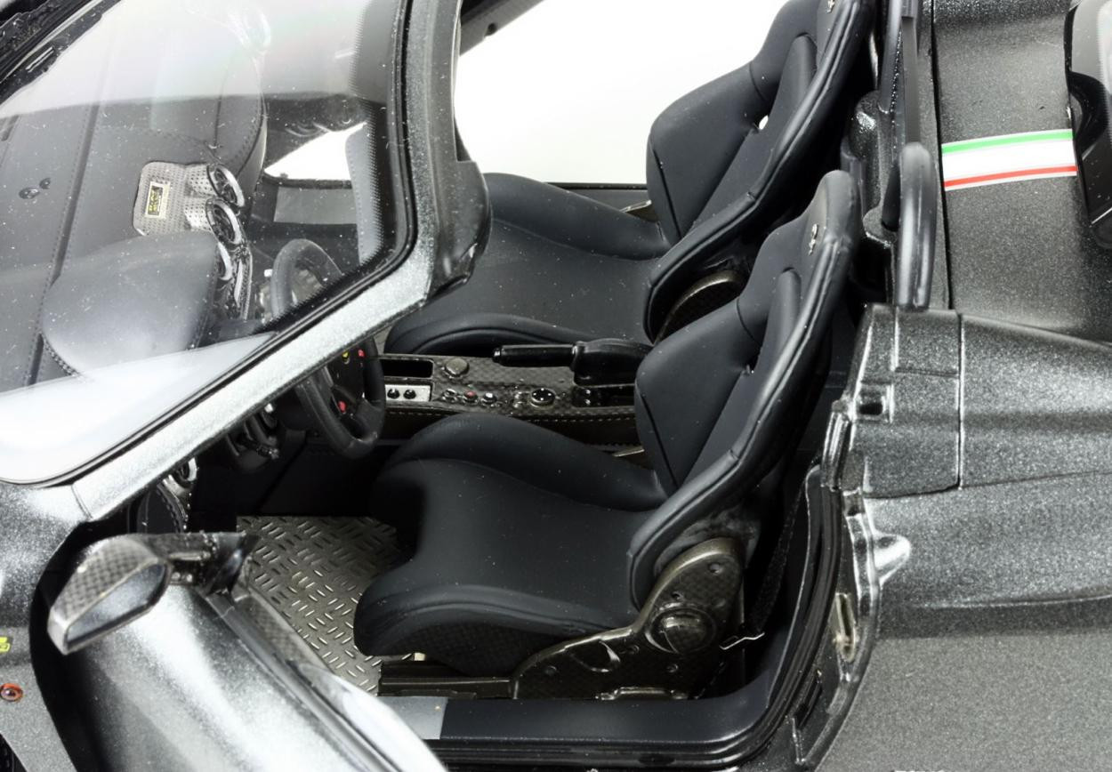 Popis modelu: Model je vyroben technologí Die-Cast, při této technologii výrobce dosáhl maximální věrnosti modelu ku originálu a přitom dokázal zachovat několik pohyblivých dílů. Model má otevírací dveře, kapotu nad motorem, zavazadlový prostor. Barva modelu: Grigio Silverstone Matt - pruhy v italské trikoloře. Je dodáván na polystyrenovém podstavci.