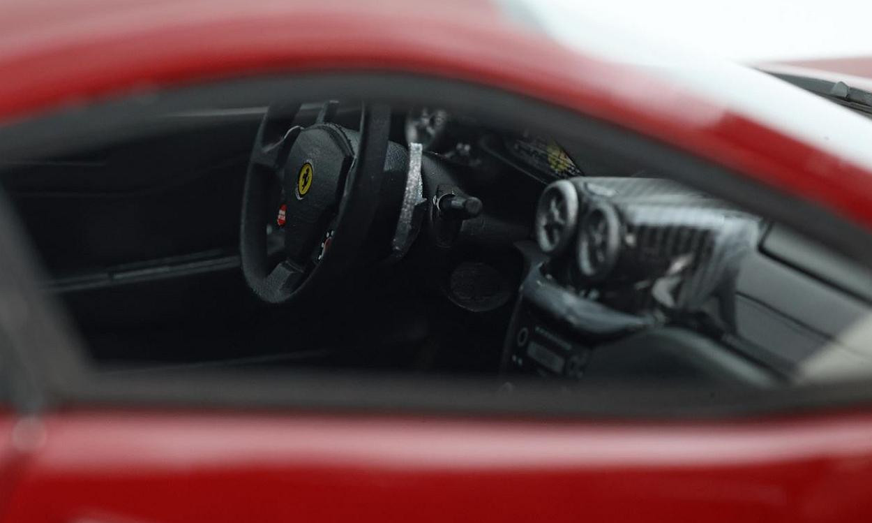 Popis modelu: Model je vyroben z pryskyřičné slitiny RESIN, při této technologii výrobce dosáhl maximální věrnosti modelu ku originálu za cenu nemožnosti cokoli otevřít. Model je dodáván přišroubován na podkladové desce. Verze modelu odpovídá vozu s automatickou převodovkou. Barva modelu Fiorano Red.