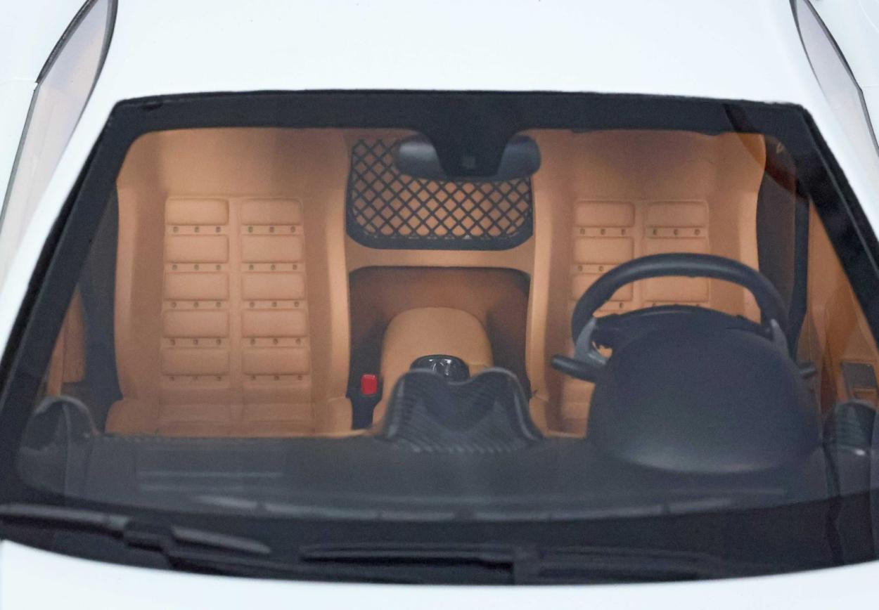 Popis modelu: Model je vyroben z pryskyřičné slitiny RESIN, při této technologii výrobce dosáhl maximální věrnosti modelu ku originálu za cenu nemožnosti cokoli otevřít. Model je dodáván přišroubován na podkladové desce. Verze modelu odpovídá vozu s automatickou převodovkou. Barva modelu Avus White interiér v barvě hnědé kůže.