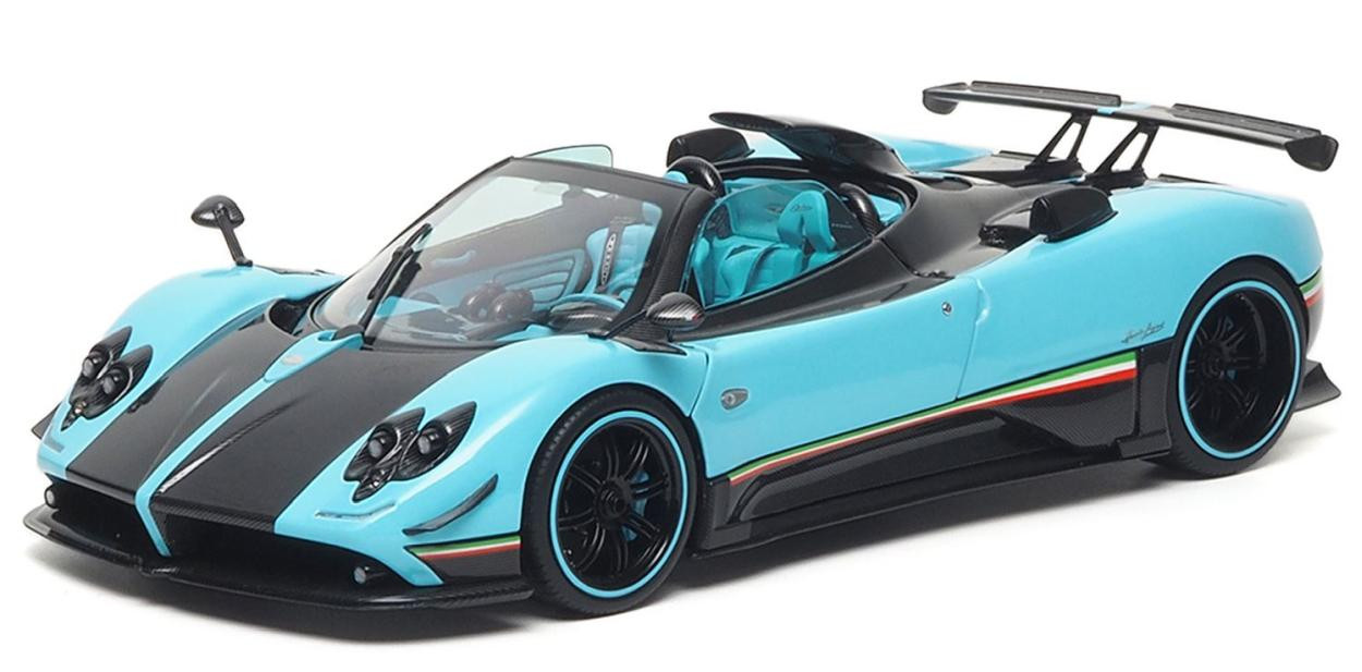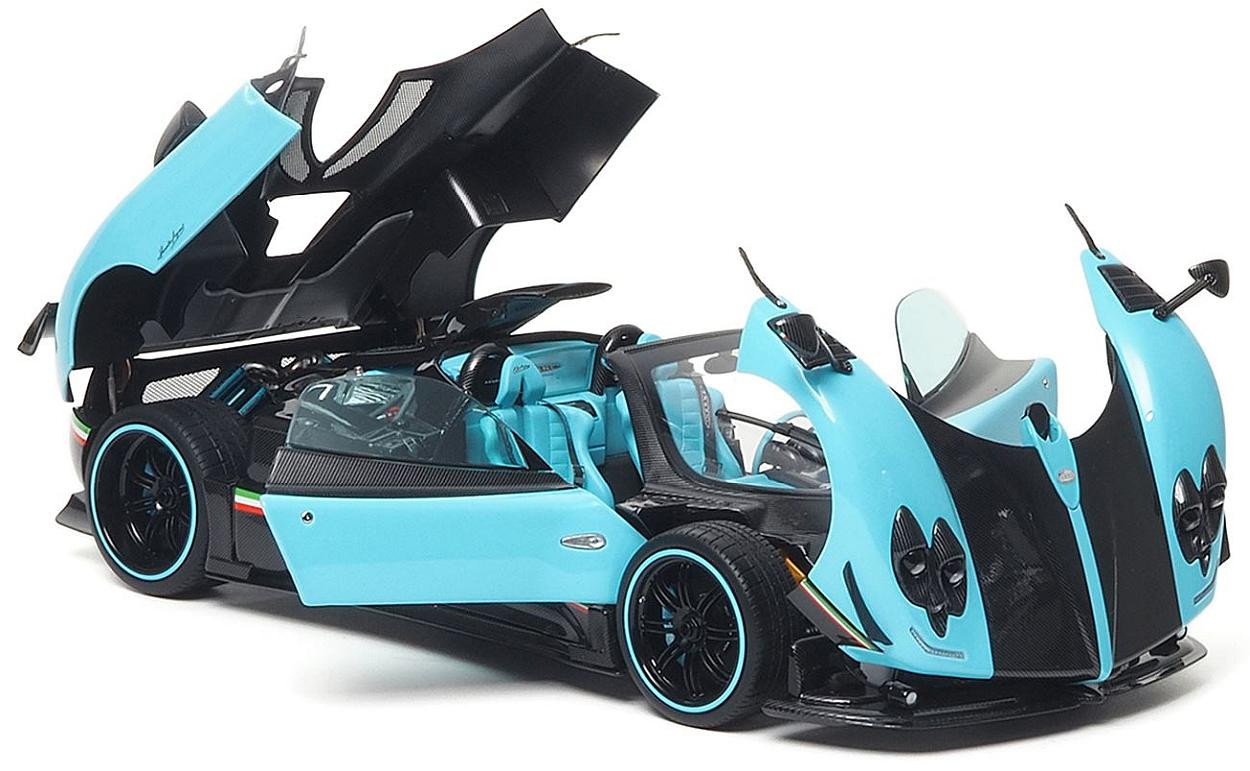 Balení s polyfoamovou krabicí bez podstavce. Zonda Uno je unikátní model, pravděpodobně zakoupený blízkovýchodním šejkem. Tyrkysová a uhlíková vlákna karoserie činí jedinečnou, interiér je upraven světle modrým čalouněním nebo kontrastními detaily z odhalených uhlíkových vláken.