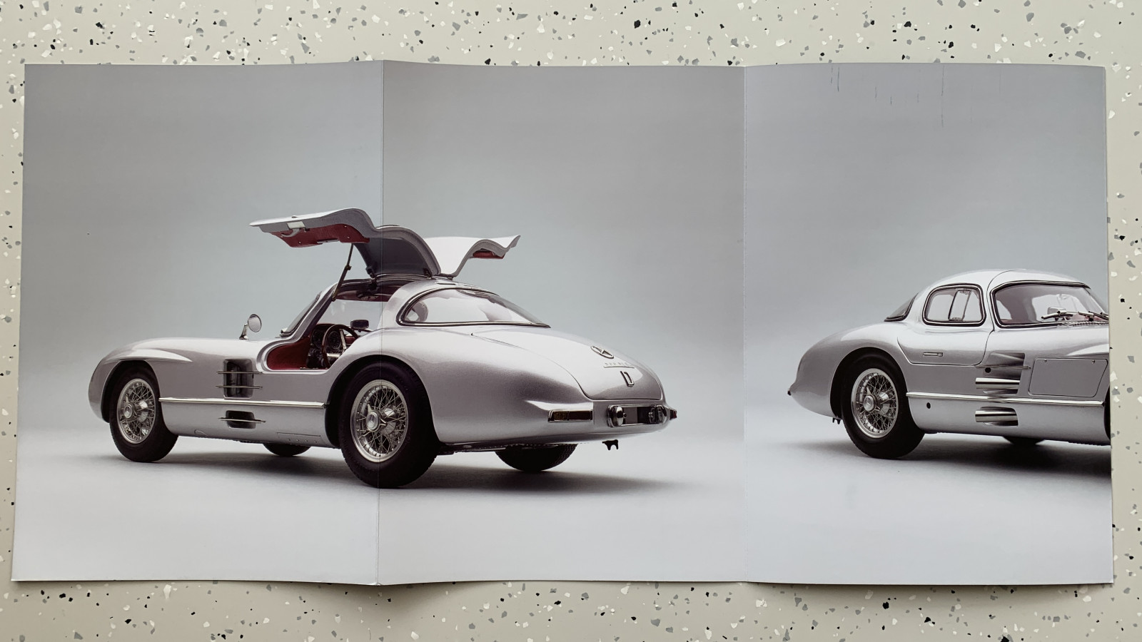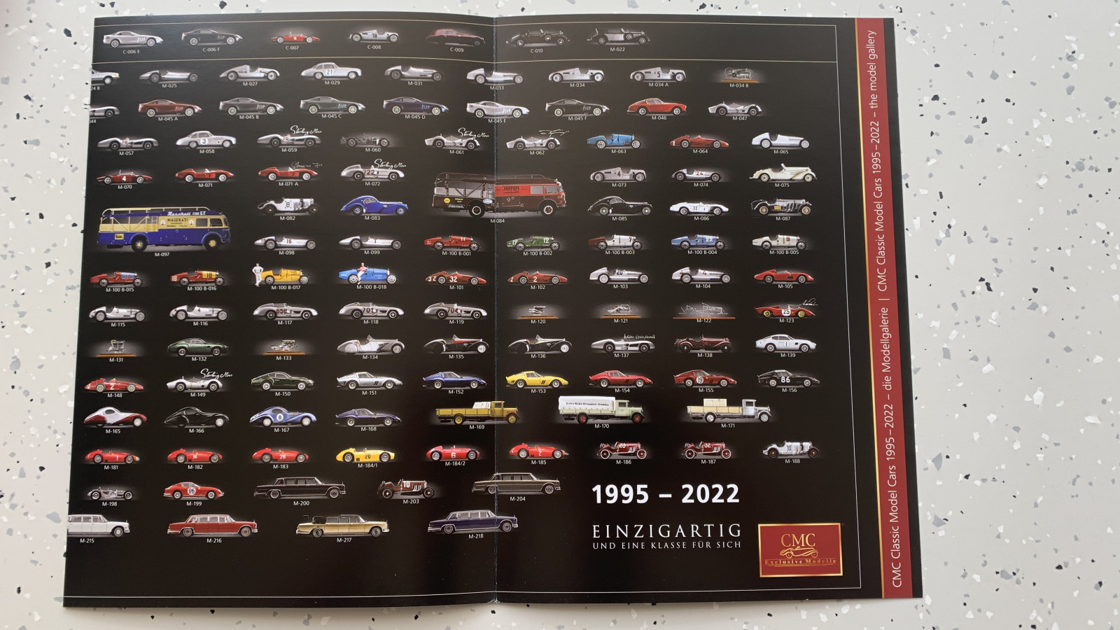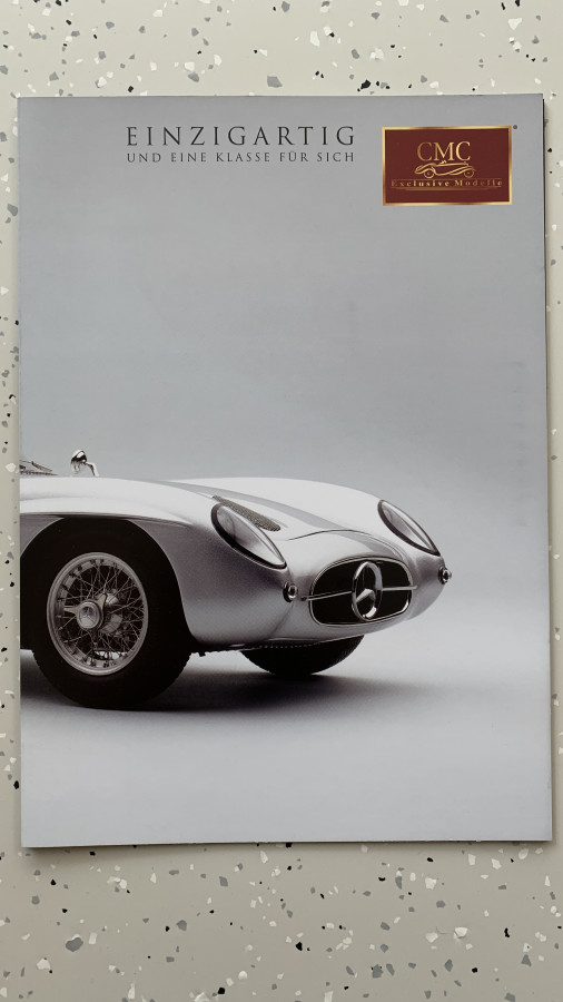 Leták doplňující sérii vzniklou k 25. výročí firmy CMC. Ve složeném stavu jeho rozměny odpovídají formátu A4. Po rozložení na plnou délku jednou stranu vylpňuje sestava modelů známá z plakátů - malé obrazky celkové dosavadní produkce firmy, druhou velkoformátová fotografie modelu Merceds-Benz 300 SLR.