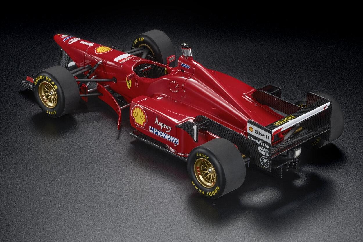 Popis modelu: Model je vyroben z pryskyřičné slitiny RESIN. Model je přišroubován na podkladové desce a je včetně výstavní vitríny. Vychízí z verze vozu, se kterým Michael Schumacher zvítězil v GP Belgie Spa-Francorchamps v roce 1996. Zobrazená dokumentace aktuálně odpovídá modelu 1:18.