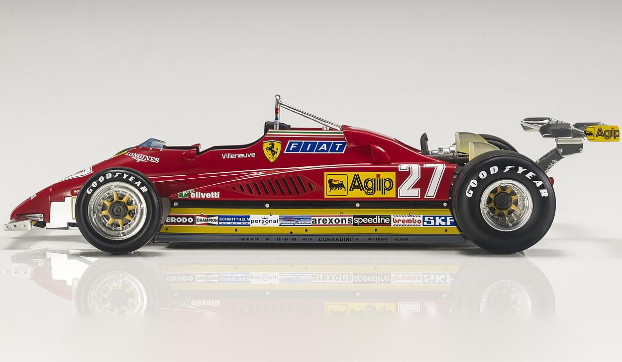 Popis modelu: Model je vyroben z pryskyřičné slitiny RESIN. Verze modelu vychází z vozu, který pilotoval Gilles Villeneuve. Model je dodáván přišroubován na podkladové desce.
