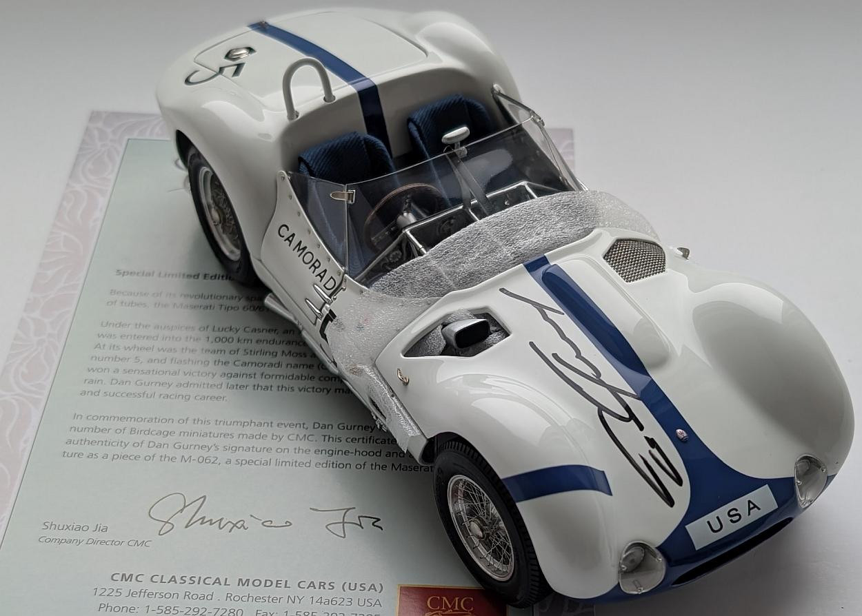 Maserati Tipo 61 Birdcage #5, podpis Dan Gurney
