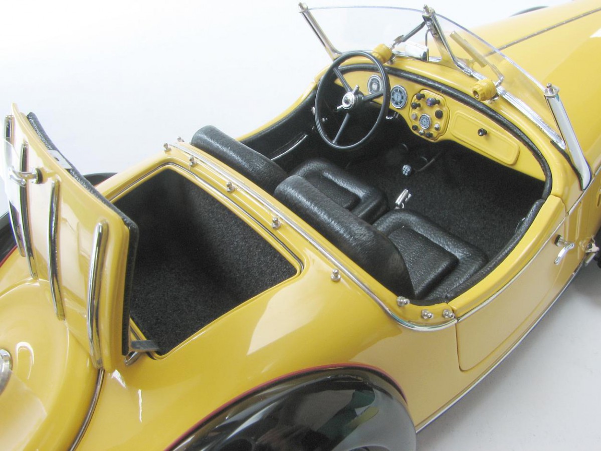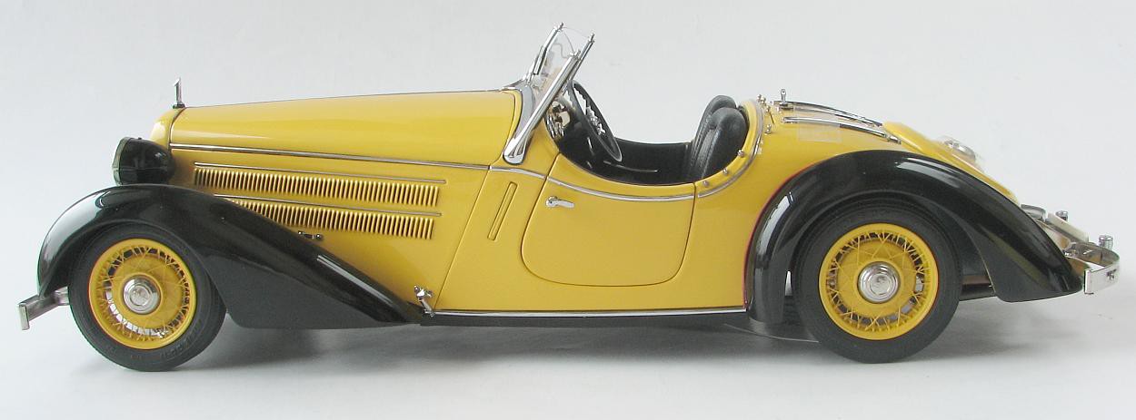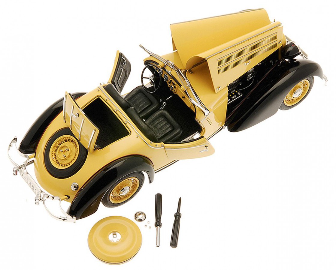 Popis modelu: CMC vyrobilo tuto úchvatně krásnou ručně montovanou miniaturu z více než 1600 samostatných dílů ve třech různých barevných kombinacích. Každá barevná kombinace ve zvláštním způsobu přináší kouzlo tohoto mimořádného modelu. Jde o kovový model se sedadly čalouněnými kůží, otevírátelnou kapotou nad motorem. Demontovatelný je kryt rezervy a následně rezerva jako taková, otevírací jsou samozřejmě i dveře.