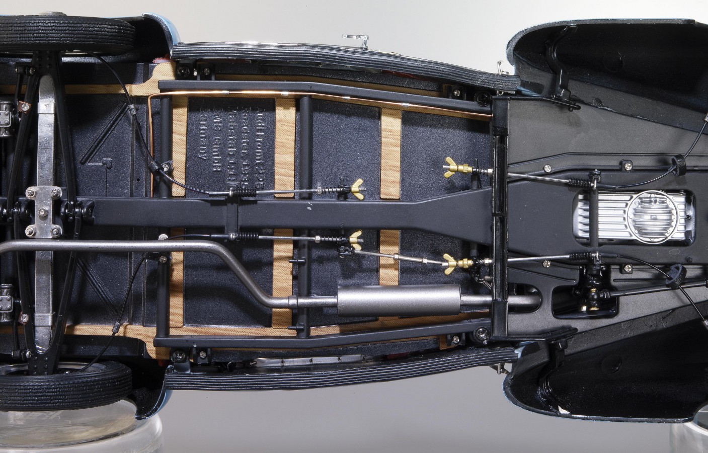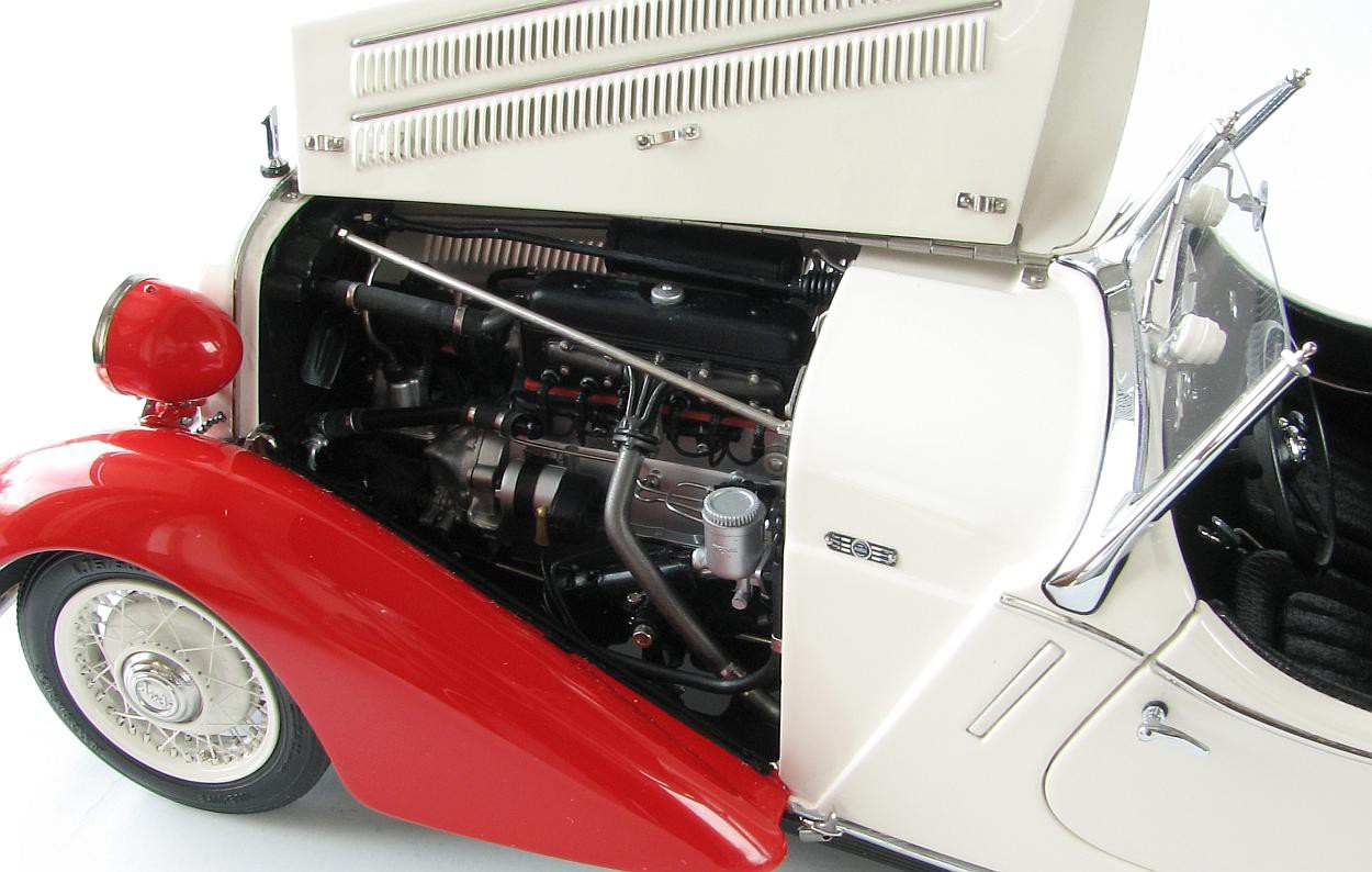 Popis modelu: CMC poskytlo tuto úchvatně krásnou ručně montovanou miniaturu z více než 1600 samostatných dílů ve třech různých barevných kombinacích. Každá barevná kombinace ve zvláštním způsobu přináší kouzlo tohoto mimořádného modelu. Jde o kovový model se sedadly čalouněnými kůží, otevírátelnou kapotou nad motorem. Demontovatelný je kryt rezervy a následně rezerva jako taková, otevírací jsou samozřejmě i dveře.