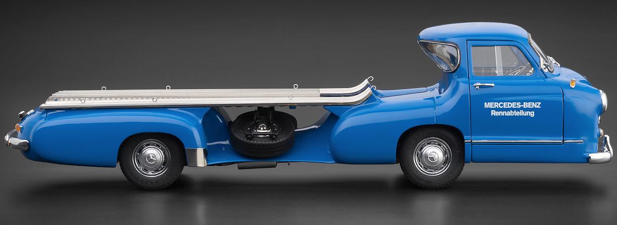 V roce 1954 společnost Mercedes-Benz vytvořila ve svém experimentálním oddělení ručně vyráběný jedinečný model – přepravník závodních vozů Mercedes-Benz. S modrým lakem, jemnými křivkami a maximální rychlostí 170 km/h, „Blue Wonder“ budil stejně tolik pozornosti tak jako závodní vozy,které převážel. Poté co v roce 1955 Mercedes-Benz odešel z profesionálních závodů, zmizel transportér ze zraku veřejnosti a byl bohužel v roce 1967 sešrotován.