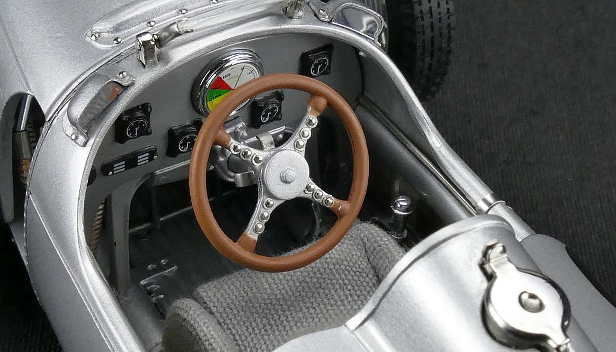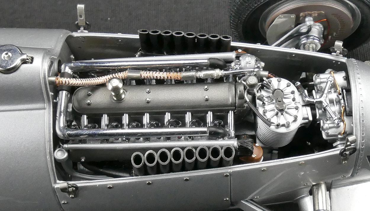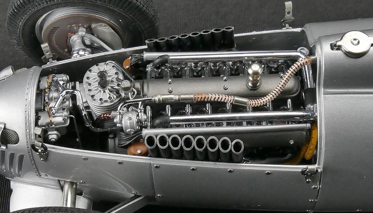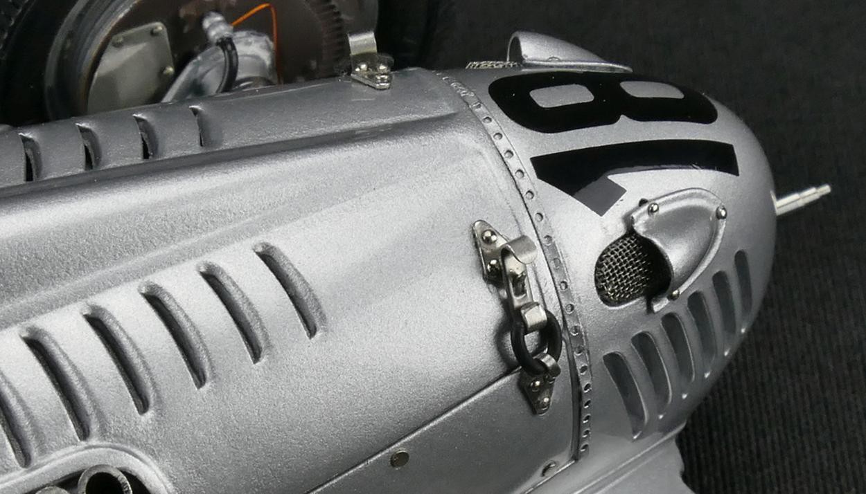 Popis modelu: Ručně montovaný model se skládá z 1191 součástek, má snímatelné kryty nad motorem a nad přední částí vozu, oba díly jsou zajištěny pomocí gumiček. Model má pohyblivý větrný štítek před pilotem, otevírací víčko nádrže včetně sítka proti nečistotám, sedadlo je čalouněno látkou, demontovatelná kola. Úžasně zpracovaný motor se skládá z více jak 400 součástek.