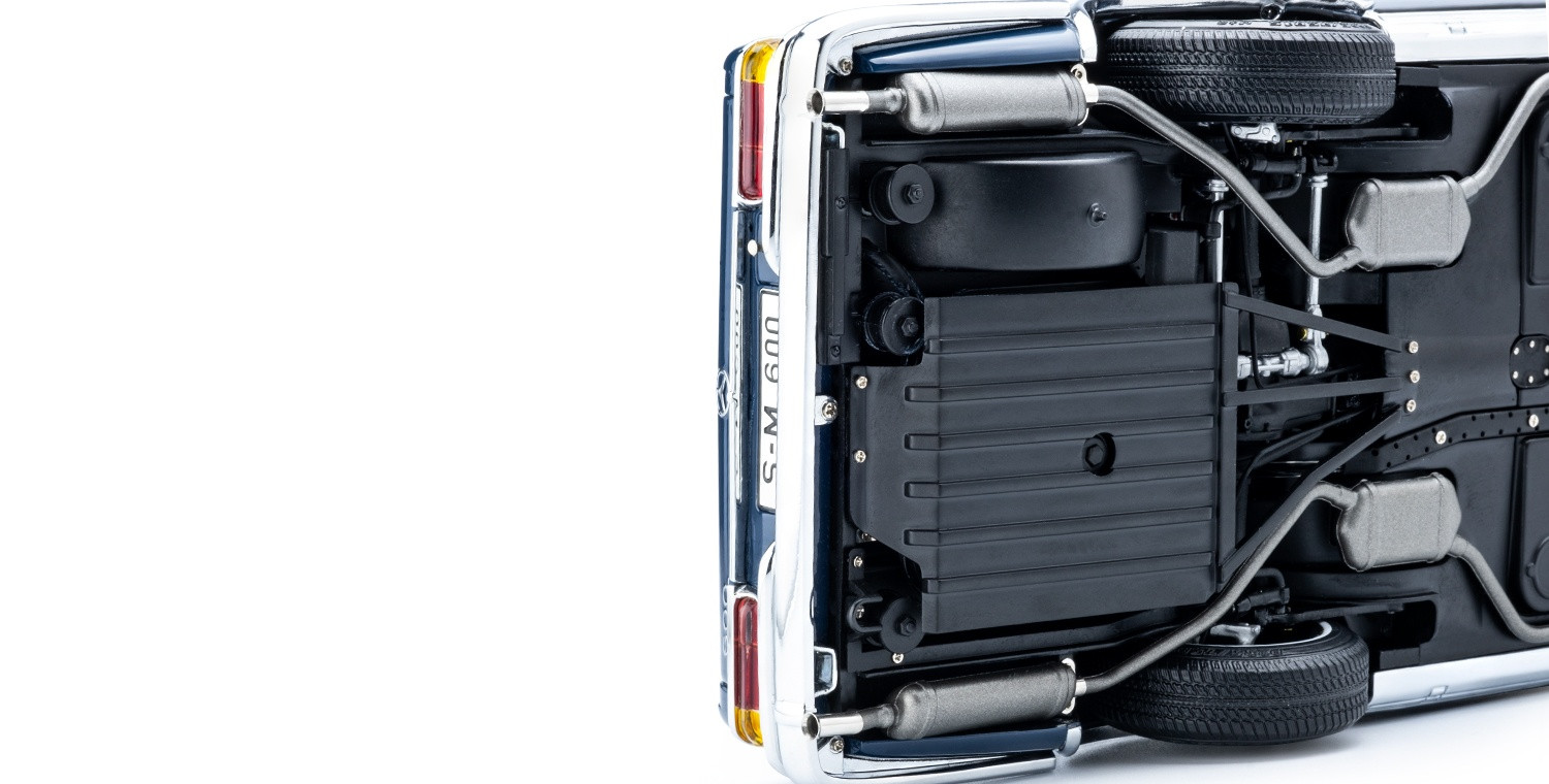 Varianta Landaulet nabízená od roku 1965 byla nejreprezentativnějším verzí vozu Mercedes-Benz 600. Tzv. nechat se vozit a ukazovat se publiku. Ve verzi implementované CMC se textilní skládací část otevírá nad zadními dveřmi a zadními sedadly. V této konfiguraci byl landaulet používán vladaři po celém světě. Modrý lak modelu CMC vkusně odráží styl šedesátých let.