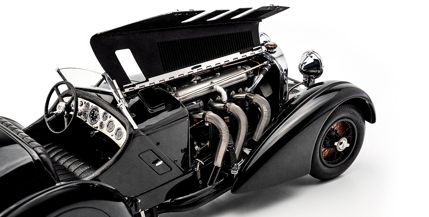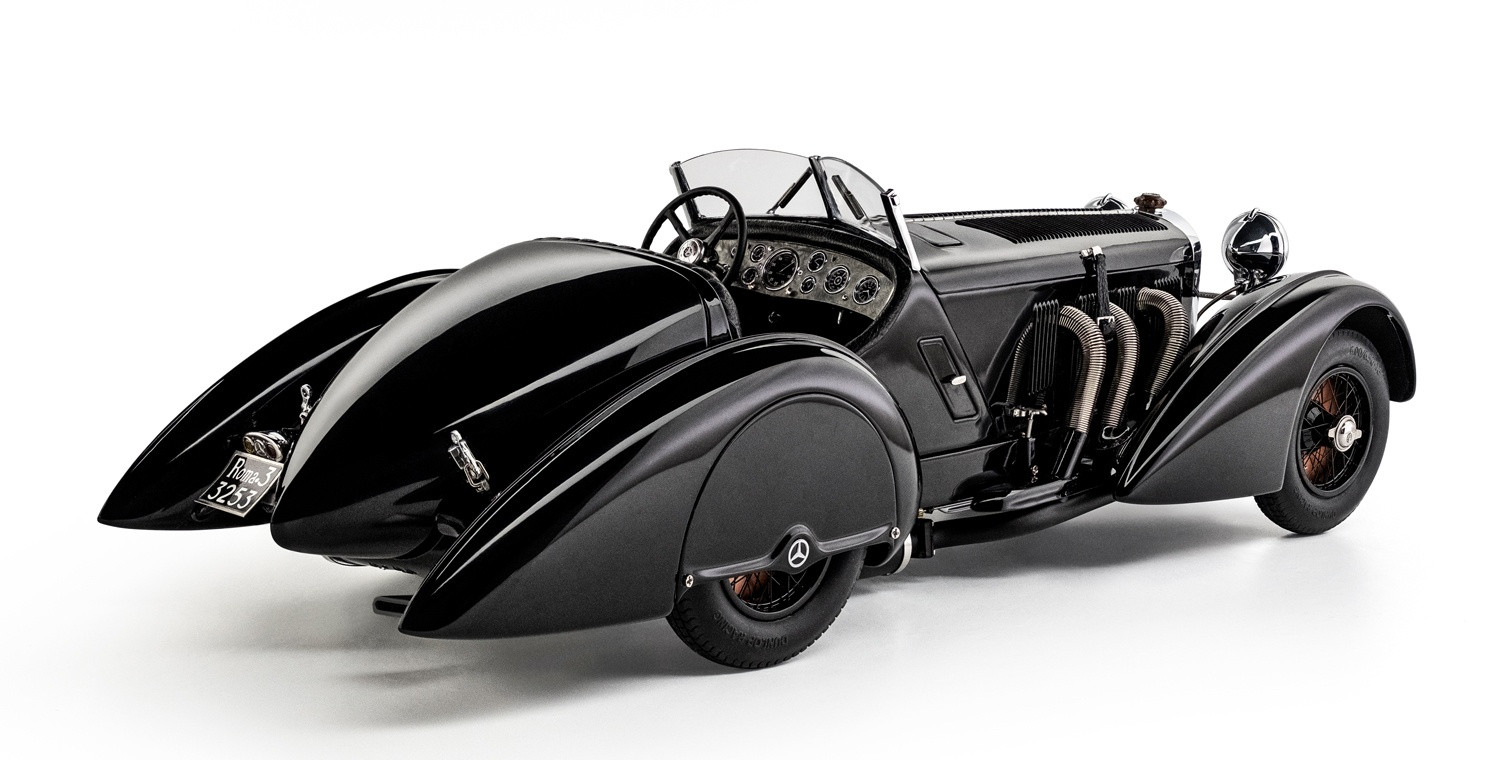 Modelové vozidlo, které je považováno za jedno z nejcennějších vozů Mercedes-Benz na světě, je stejně fascinující jako model CMC. Z pouhých 30 dosud postavených SSK má podvozek číslo 36038 jeden z nejzajímavějších příběhů. To bylo nejprve doručeno do Japonska v roce 1930 jako podvozek bez karoserie. Odtud šasi dorazilo do Itálie, kde získalo svou první karoserii. Nový majitel a soukromý závodník Carlo Felice Trossi původně používal SSK v závodech. Poté však pokračoval v představě, že dá automobilu racionální karoserii roadsteru, nadčasovou. Vědecká aerodynamika vznikla teprve na počátku 30. let. Mnoho moderních vozidel z této doby vypadá elegantně, aniž by prokázalo dynamické výhody. Dalo by se říci, že to byla móda doby, kdy byly zefektivněny i každodenní předměty. Sám Trossi předal svou myšlenku na tuto jedinečnou karoserii na papíře.