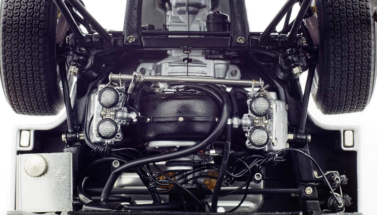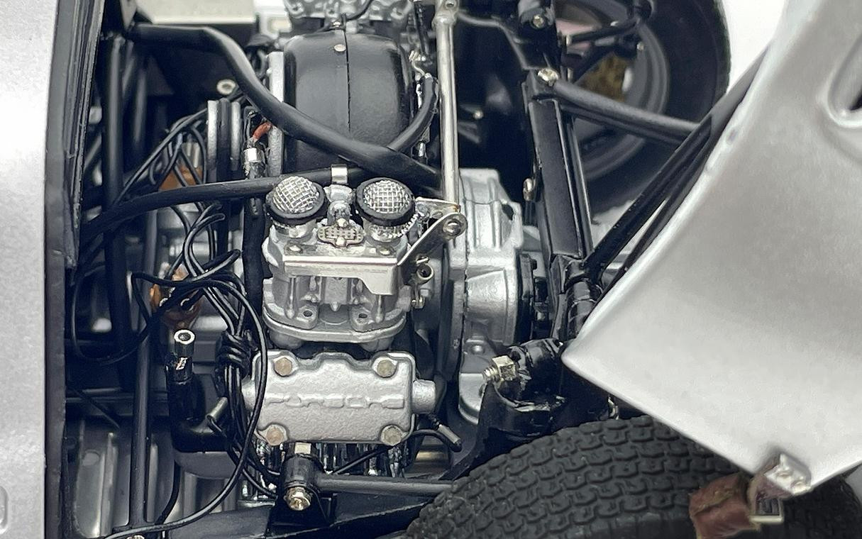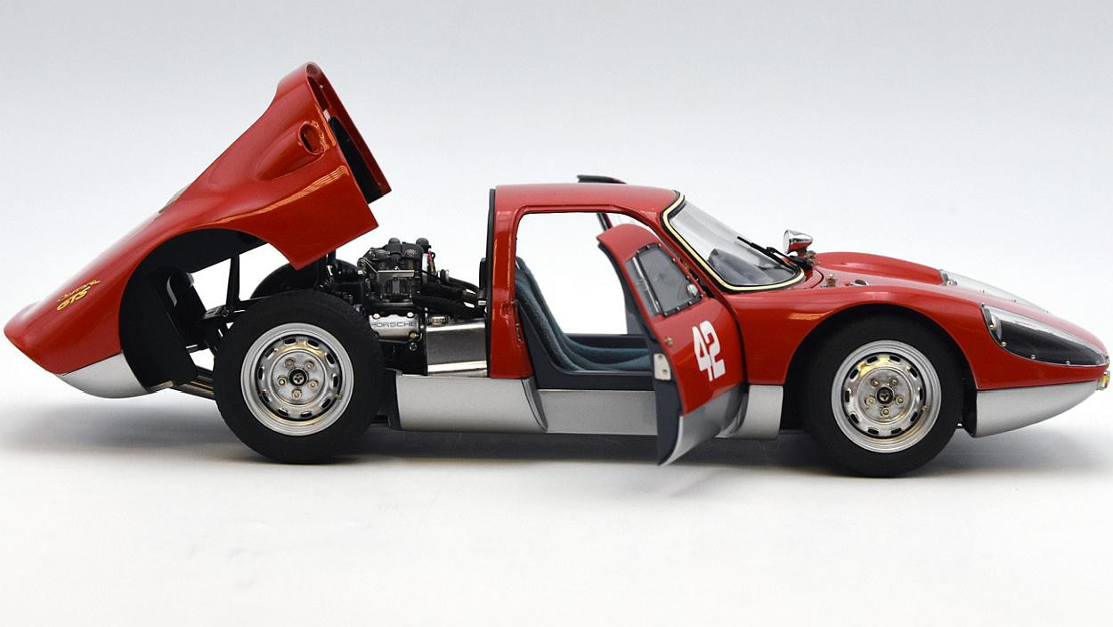 Popis modelu: Model má otevírací dveře, kapotu nad motorem a zavazadlový prostor, víčko nádrže, kryt v zadním čele modelu, posuvné sklo u řidiče. Součástí balení jsou klíče na demontáž kol a poklice, které jsou jako u předchozí verze Porsche na magnety. K otevírání kapoty nad motorem (nádherně zpracovaný, škoda, že se zatím nenabízí v samostatné vitrínce), přední kapoty i krytu v zadním čele je nutno vždy odjistit potřebné kličky dle přiloženého návodu. Dálším nadstandardem modelu je výměnné výfukové potrubí, další verze je nutno ale dokoupit jako samostatný model (katalogová čísla A031 až A033). Verze modelu vycházi z vozu, který byl na PEBBLE BEACHAUCTION 2017.