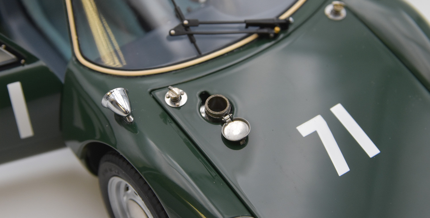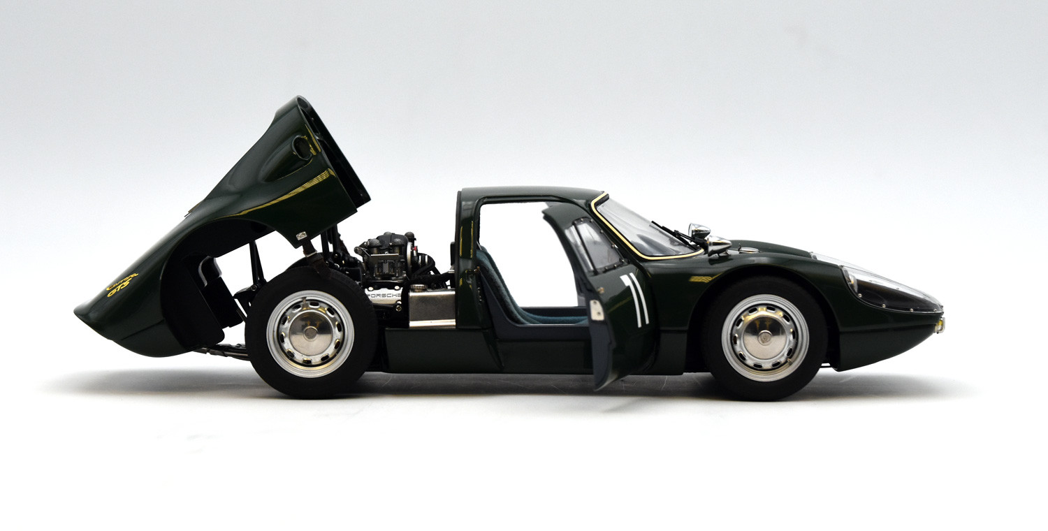 Popis modelu: Model má otevírací dveře, kapotu nad motorem a zavazadlový prostor, víčko nádrže, kryt v zadním čele modelu, posuvné sklo u řidiče. Součástí balení jsou klíče na demontáž kol a poklice, které jsou jako u předchozí verze Porsche na magnety. K otevírání kapoty nad motorem (nádherně zpracovaný, škoda, že se zatím nenabízí v samostatné vitrínce), přední kapoty i krytu v zadním čele je nutno vždy odjistit potřebné kličky dle přiloženého návodu. Dálším nadstandardem modelu je výměnné výfukové potrubí, další verze je nutno ale dokoupit jako samostatný model (katalogová čísla A031 až A033). Model vychází z verze vozu ze závodu Goodwood Revival TT Race 2018. Bližší informace včetně obrazové dokumentace budou doplněny.