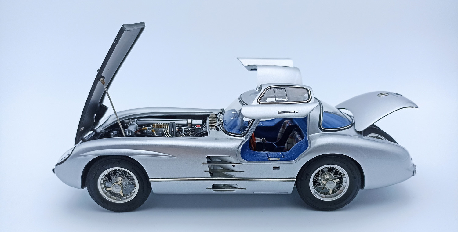 Závodník 300 SLR vycházel ze slavného šampiona formule 1 W196 ze sezóny 1954-55. Zkratka SLR znamená Sport Light-Racing (Sport Leicht-Rennen). Nová SLR, považovaná za jedno z nejkrásnějších závodních vozů všech dob, byla vybavena trochu jiným řadovým osmiválcem, který byl rozšířen na objem 3 litrů. Dva z devíti rolovacích podvozků 300 SLR, konkrétně 0007/55 a 0008/55, byly přestavěny na kupé 300 SLR s uzavřenou karoserií a křídlovými dveřmi. Byly určeny pro nadcházející Carrera Panamericana.