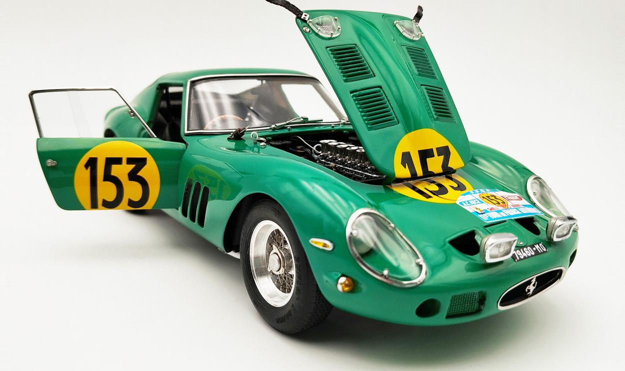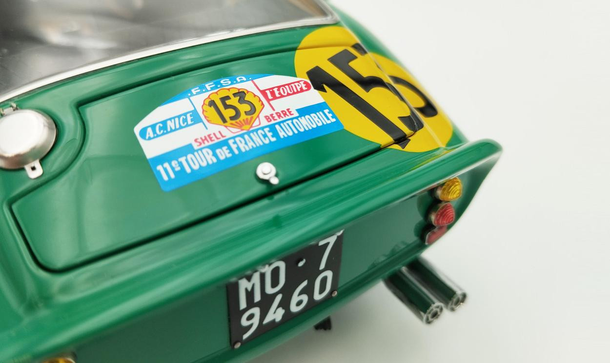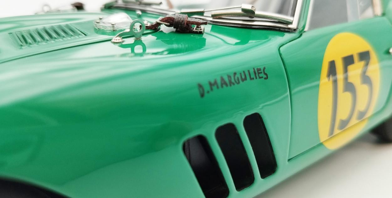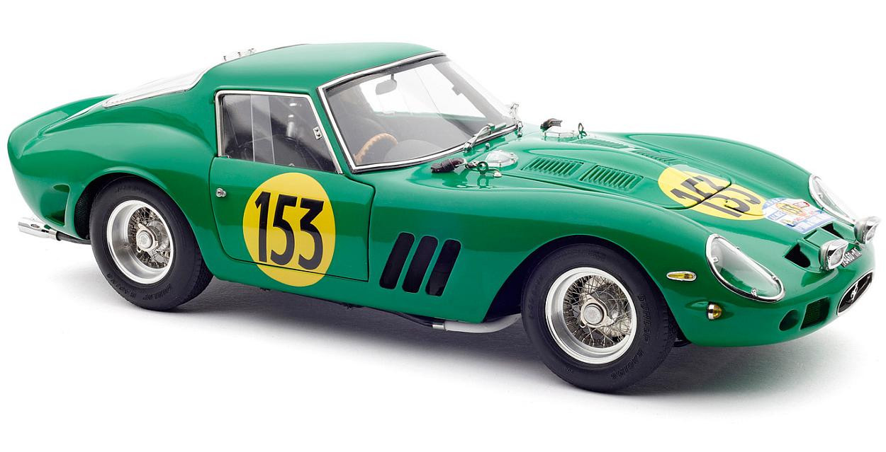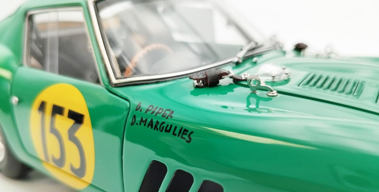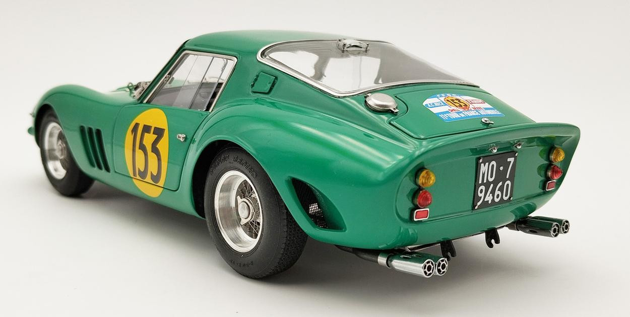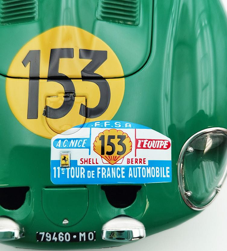 CMC prezentuje toto Ferrari 250 GTO s pravostranným řízením s výrazným nátěrem BP. Tak vypadal podvozek 3767GT, když s ním David Piper a Dan Margulies závodili se startovním číslem #153 a v cíli skončili na 4. místě absolutního pořadí na Tour de France 15. září 1962.