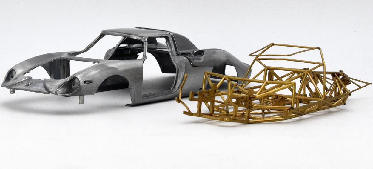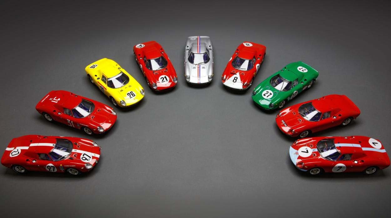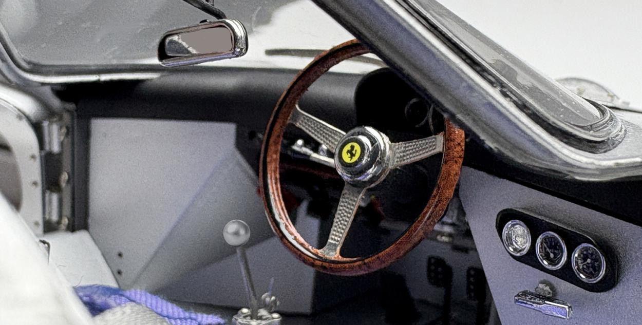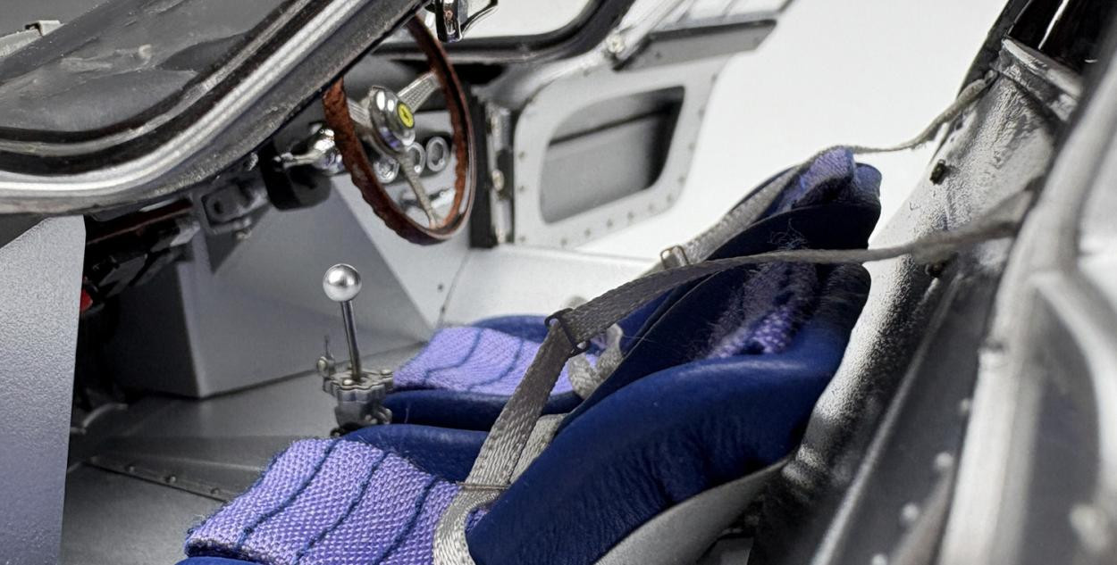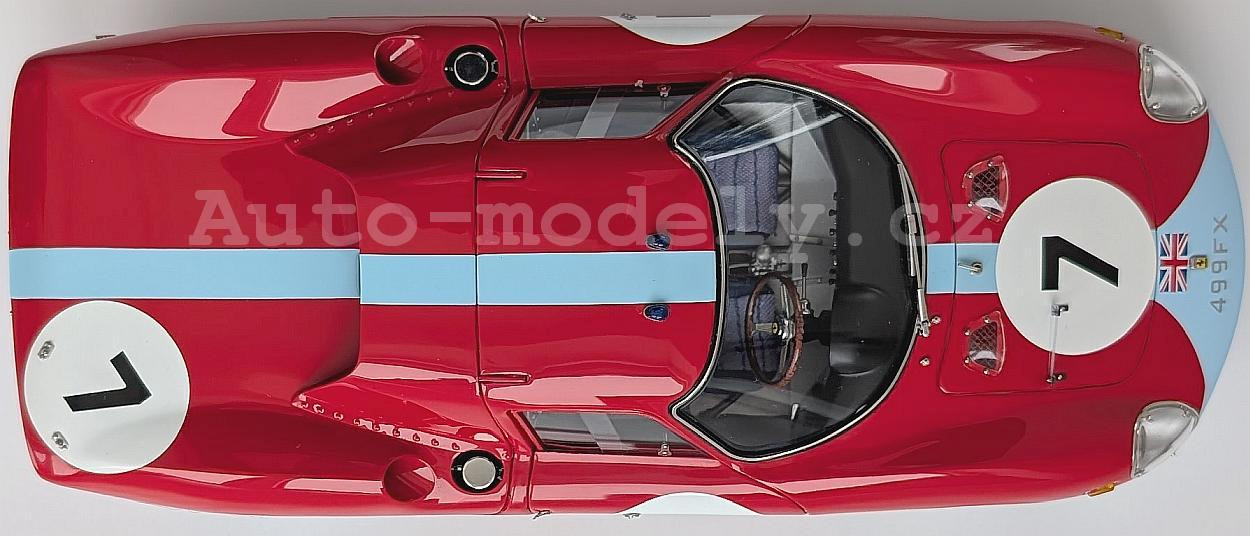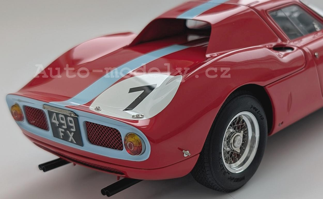 Popis modelu: Model má otevírací dveře, kapotu nad motorem, přední kapotu, víčka nádrží, posuvná boční okna, demontovatelná kola, látkou čalouněná sedadla. Jde o model, který vychází z vozu s pravostranným řízením, má více jak 1800 součástek!. Originál vozu, vyhrál závod Reims 12h 1964, Chassis 5895, Hill/Bonnier, RHDL.