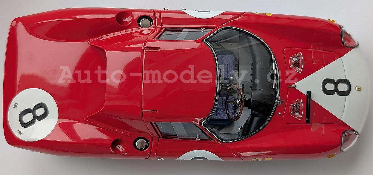 Popis modelu: Model má otevírací dveře, kapotu nad motorem, přední kapotu, víčka nádrží, posuvná boční okna, demontovatelná kola, látkou čalouněná sedadla. Jde o model, který vychází z vozu s pravostranným řízením. Model má více jak 1800 součástek! Vychází z verze vozu, který obsadil 2. místo v závodě 12 hodin v Remeši v roce 1964, posádky Surtees/Bandini.