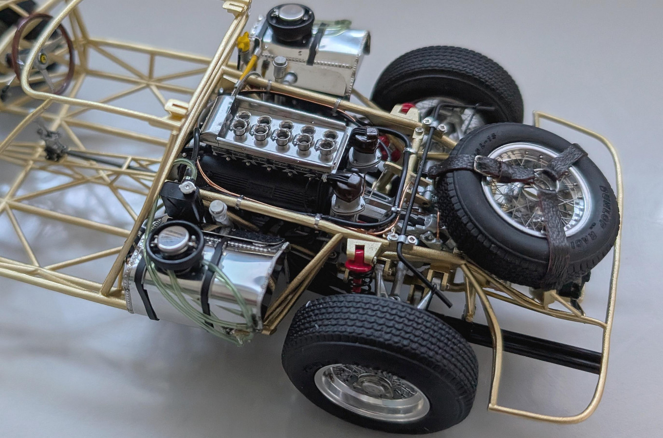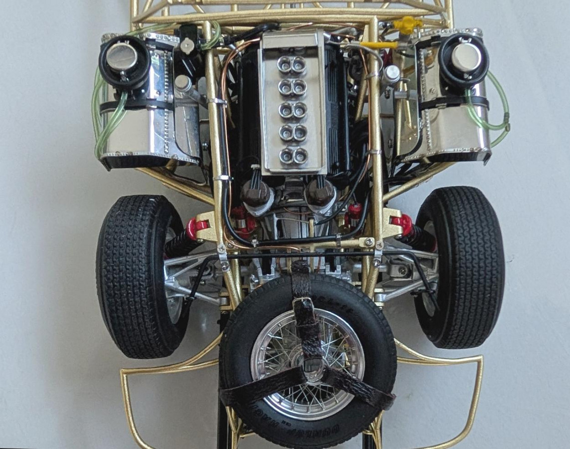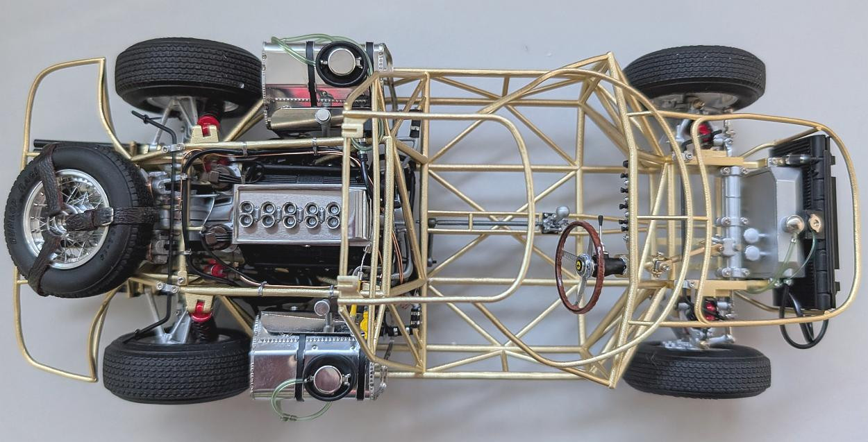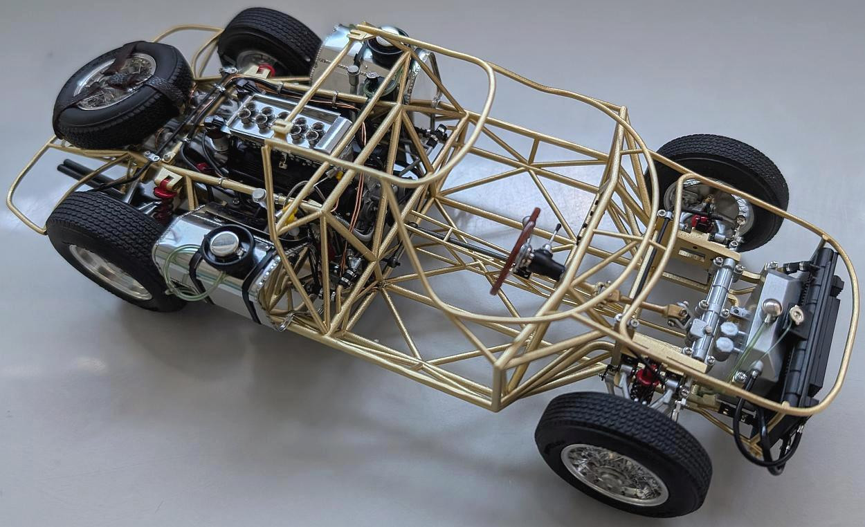 Popis modelu: Samostatně stojící chassis svařované z nerezové oceli a karoserie s možností vyklopení zadní části. Součástí balení je i vitrína, do které je možné chassis a karoserii umístit. Ideální komplet k celému modelu, který ukáže detaily zpracování.