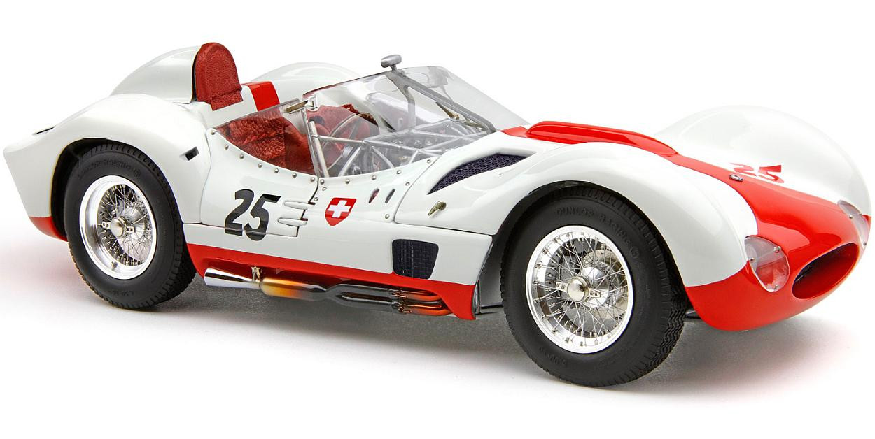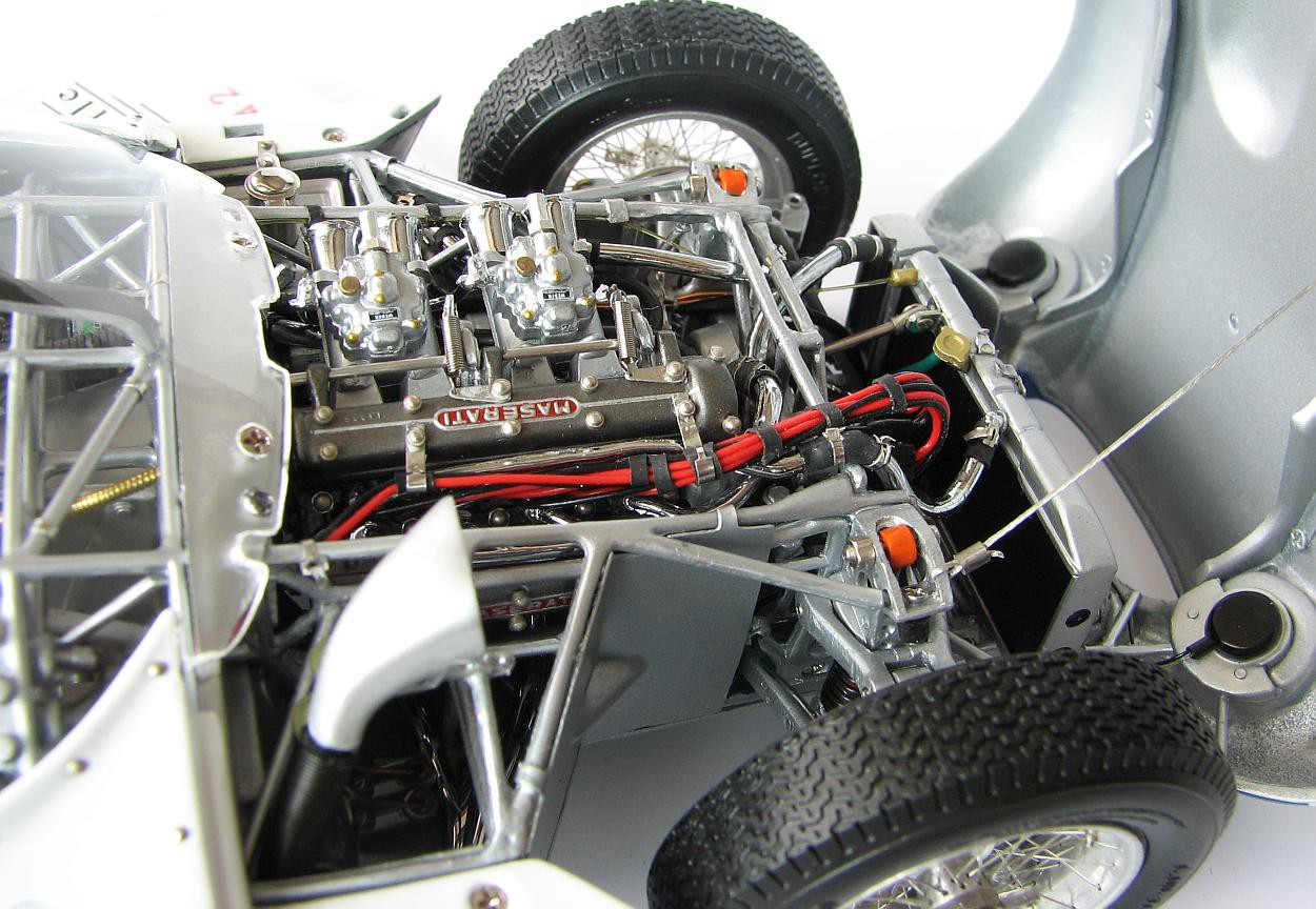 Popis modelu: Model je složen z více jak 1140 jednotlivých dílů, 507 z nich je vyrobeno z nerezové oceli, mědi a mosazi. Co je mimořádné na tomto modelu je věrnost karosérie, klecový rám jako by byl pak druhým povrchem. Mimo dopředu odklápěcí přední kapoty, je snímatelný zadní kryt nádrže, kde je skryta i rezerva a otevírací víčko nádrže. Samozřejmostí jsou otevírací dveře, demontovatelná kola, látkou čalouněná sedadla a otevírací víčko olejové nádrže. Pokud Maserati nesbíráte, udělejte výjimku.