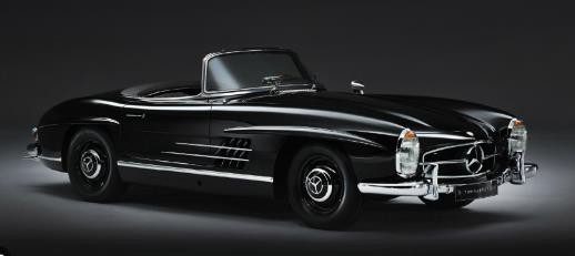 Představujeme vám klasický model 300 SL s černě lakovanou karoserií a černým interiérem. Ačkoli černá barva nebyla v té době tak populární jako dnes, v žebříčku popularity se umístila až na pátém místě, přičemž méně než 9 % karoserií automobilů používá černý lak. V kombinaci s černým koženým interiérem však stále ukazuje klasický a mimořádně elegantní standardní design.