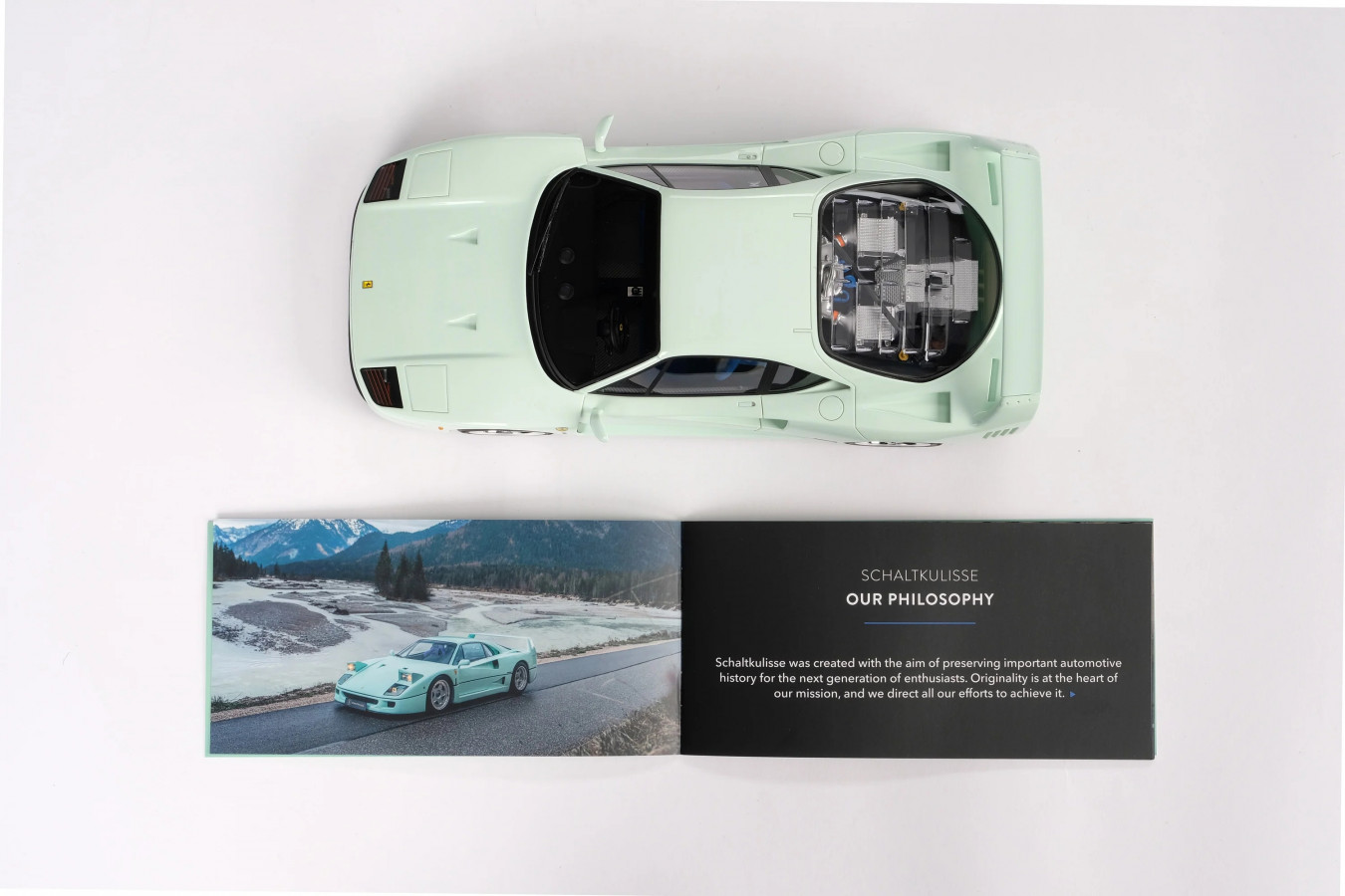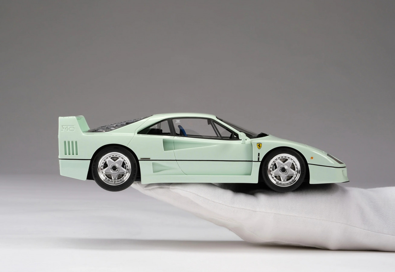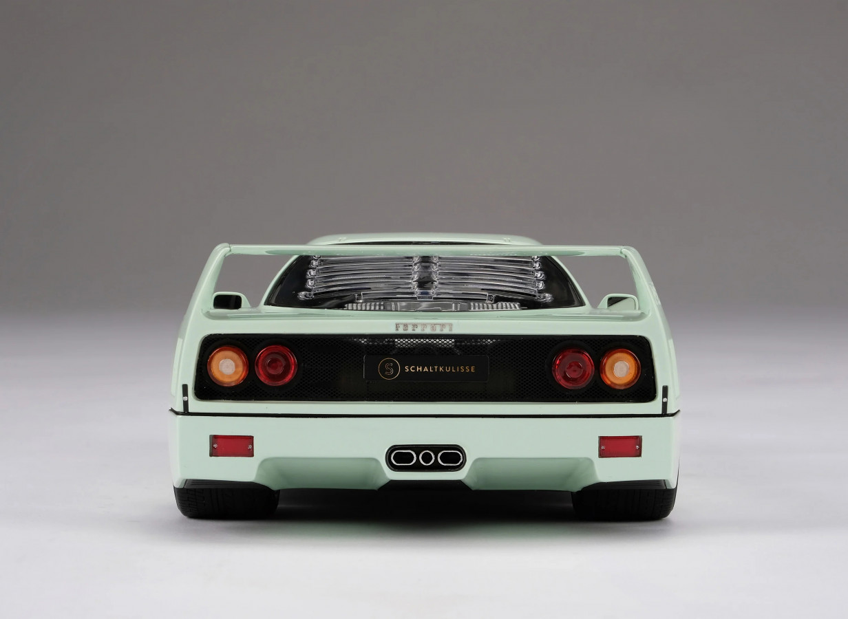 S potěšením oznamujeme, že jsme se spojili s exkluzivním německým prodejcem automobilů Schaltkulisse, abychom zvěčnili jedinečnou a charismatickou „Minty Forty“. Podvozek Ferrari F40 #88538, hříšně, ale lahodně přelakovaný ve Verde Pallido od Shaltkulisse po jeho obnovení do špičkového stavu, byl přesně replikován ve speciální edici pouhých 300 modelů po celém světě, což nabízí vzácnou příležitost vlastnit mimořádný sběratelský kousek.