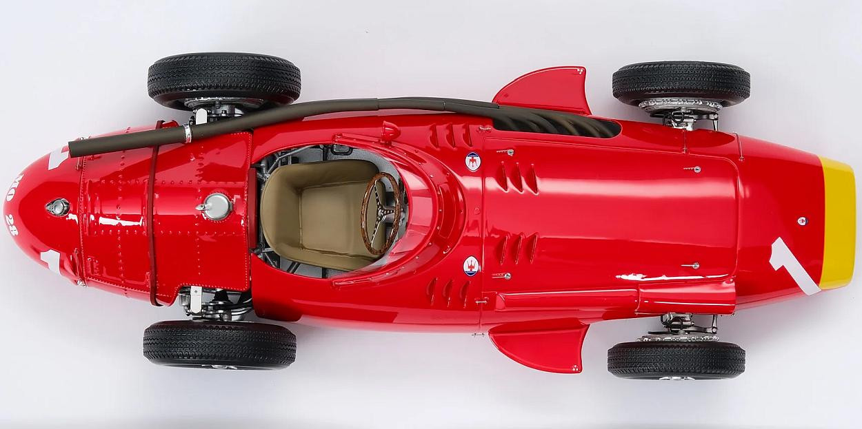 Tento model vozu Maserati 250F v měřítku 1:18 je replikou vozu, který Juan Manuel Fangio dojel k legendárnímu vítězství ve Velké ceně Německa na Nürburgringu 4. srpna 1957. Pravidelně uváděný jako Fangiův nejlepší závod, ne-li nejlepší v celé historii závodů, 46letý Argentinec překonal ztrátu téměř minuty a vyhrál závod a získal svůj pátý titul mistra světa. Fangio startoval z pole position před Ferrari Mikem Hawthornem, ale zatímco Ferrari jelo tradiční nepřetržitý závod, Maserati muselo zajíždět do boxů pro nové pneumatiky a palivo. Pomalý start vedl k tomu, že Argentinec klesl za Hawthorna a svého týmového kolegu Petera Collinse, který startoval ze čtvrtého místa, ale Fangio se znovu ujal vedení. Udržel si vedení, během kterého vytvořil čtyři nové rekordy na kolo a nakonec na konci 12. kola zastavil v boxech.