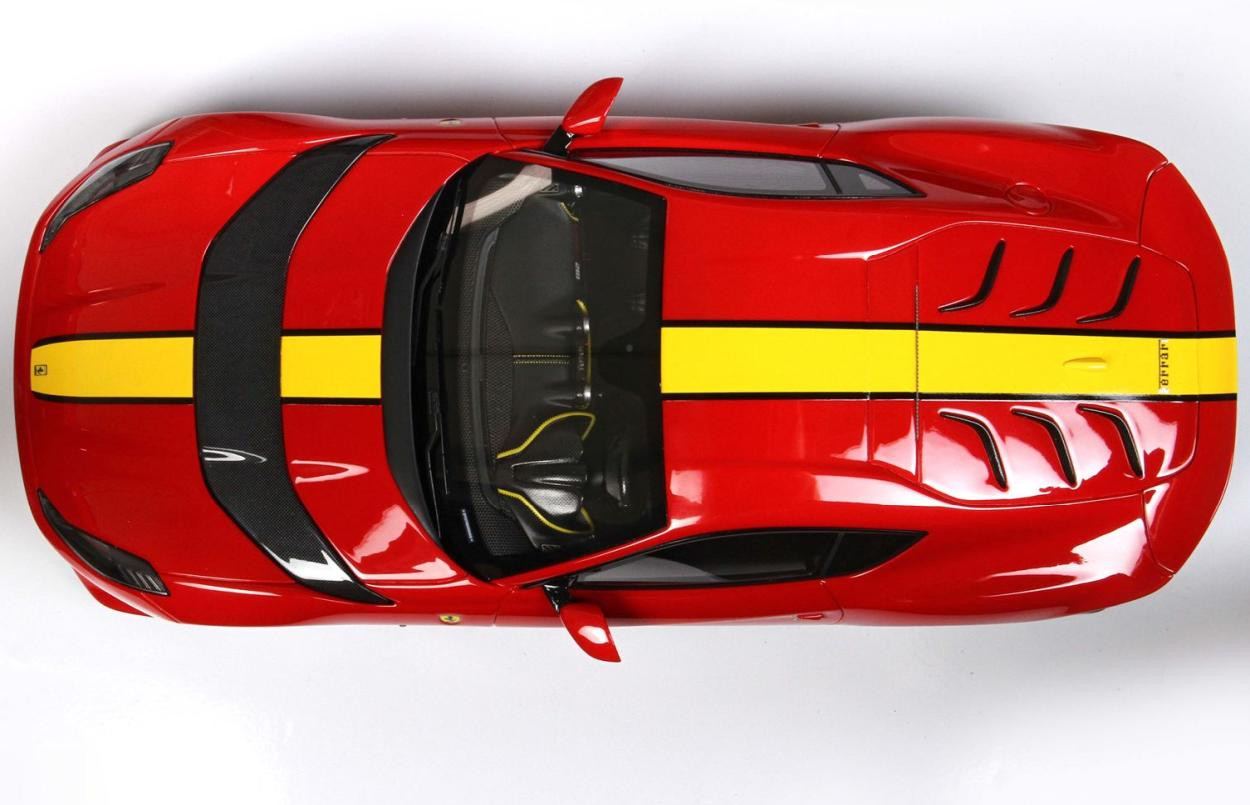 Karoserie modelu je nalakována do červené Red Corsa 322 a doplněné o podélný žlutý a horizontální černý pruh, model má žluté brzdiče.