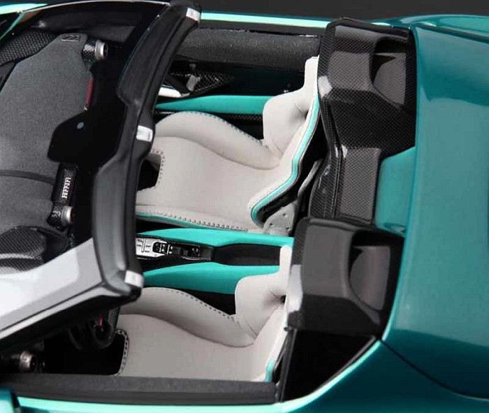 Popis modelu: Model je vyroben z pryskyřičné slitiny RESIN, při této technologii výrobce dosáhl maximální věrnosti modelu ku originálu za cenu nemožnosti cokoli otevřít. Model je dodáván přišroubován na podkladové desce a je lakován do barvy Blu Capri.