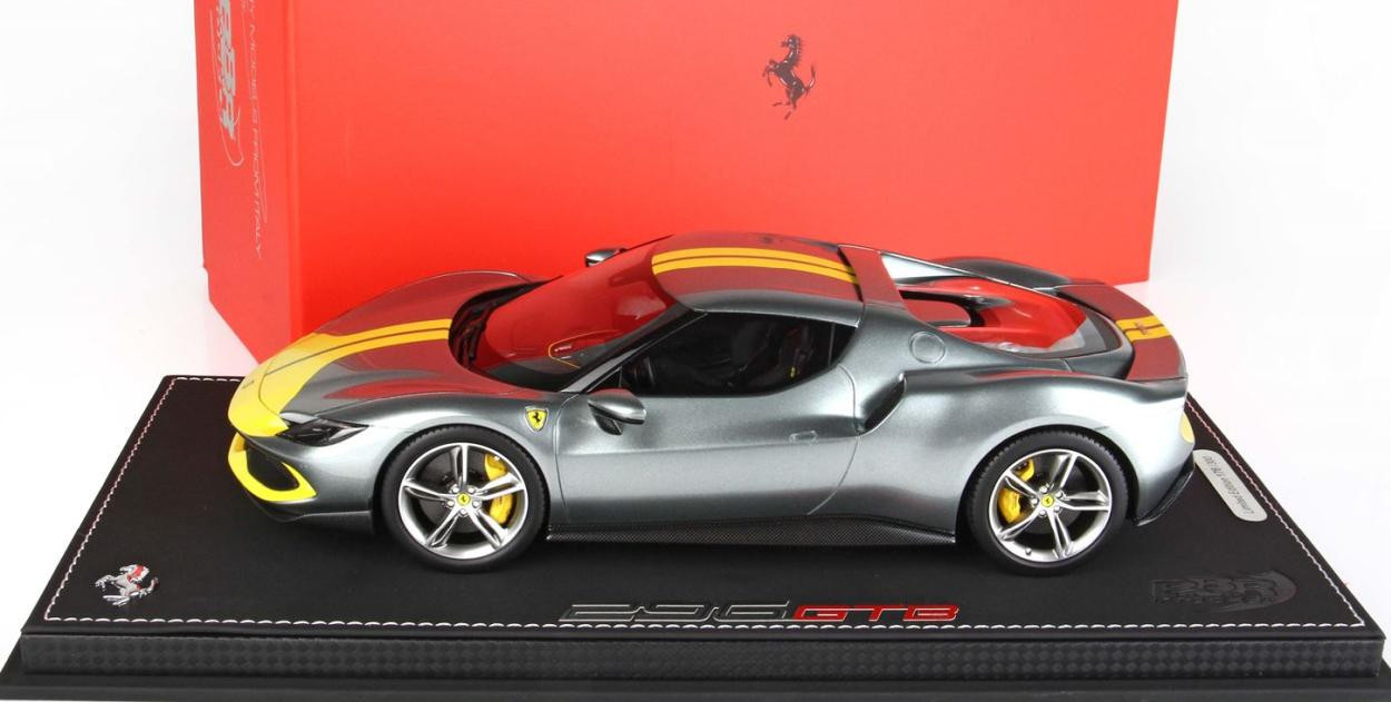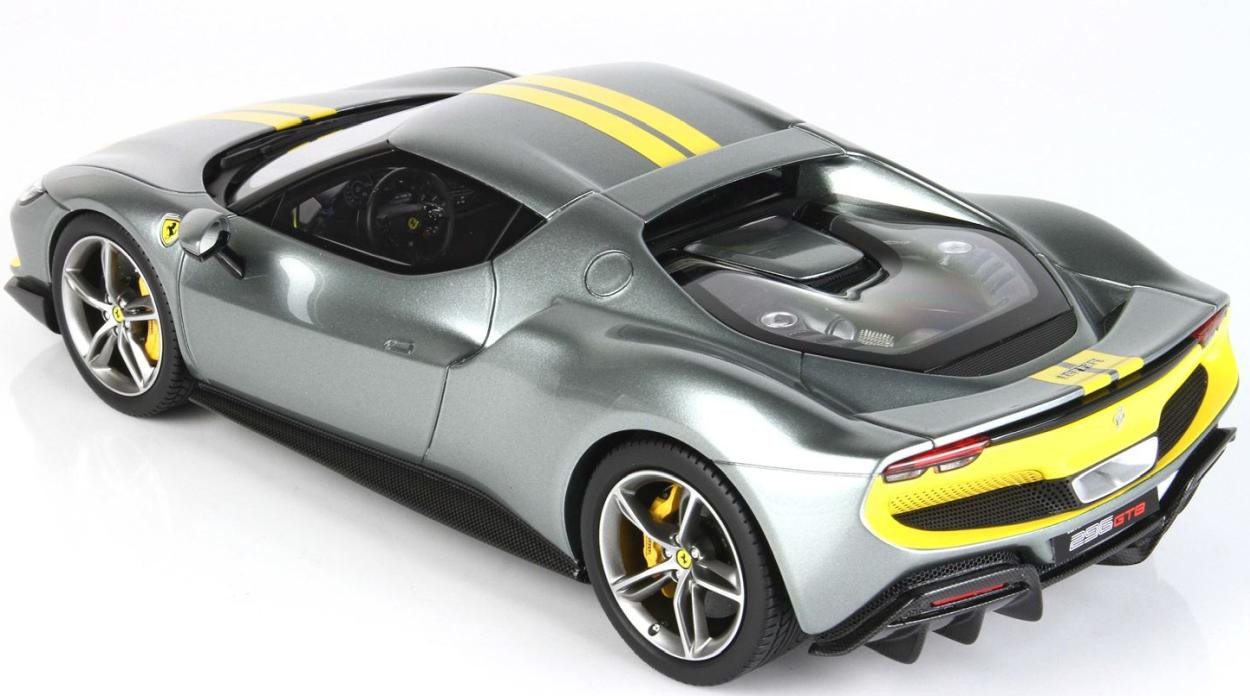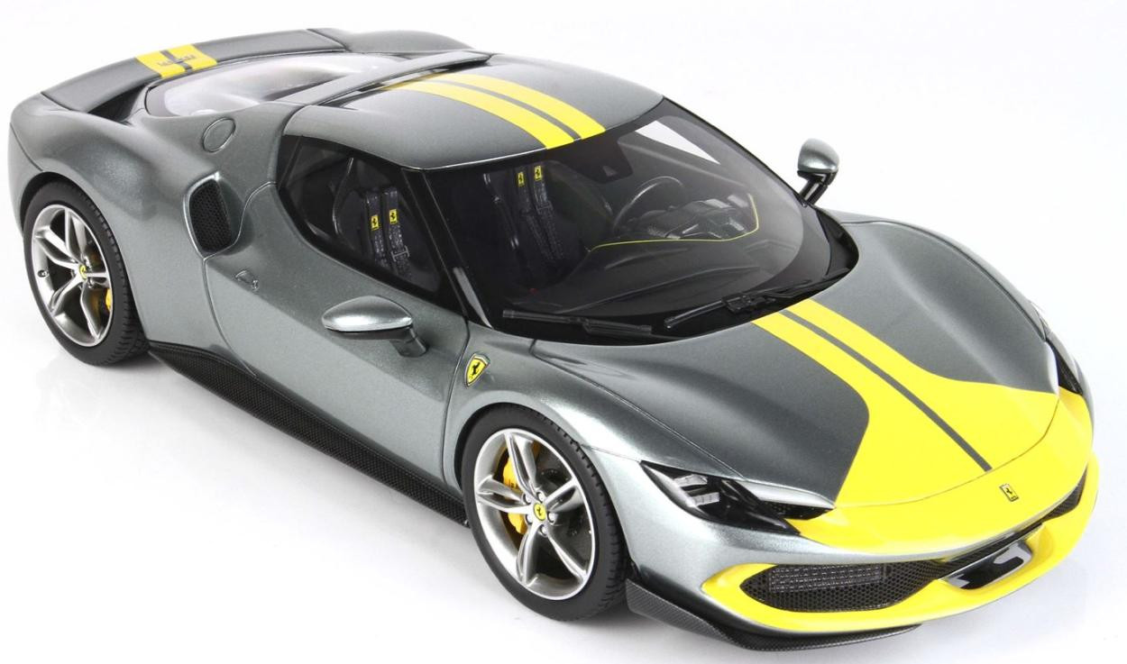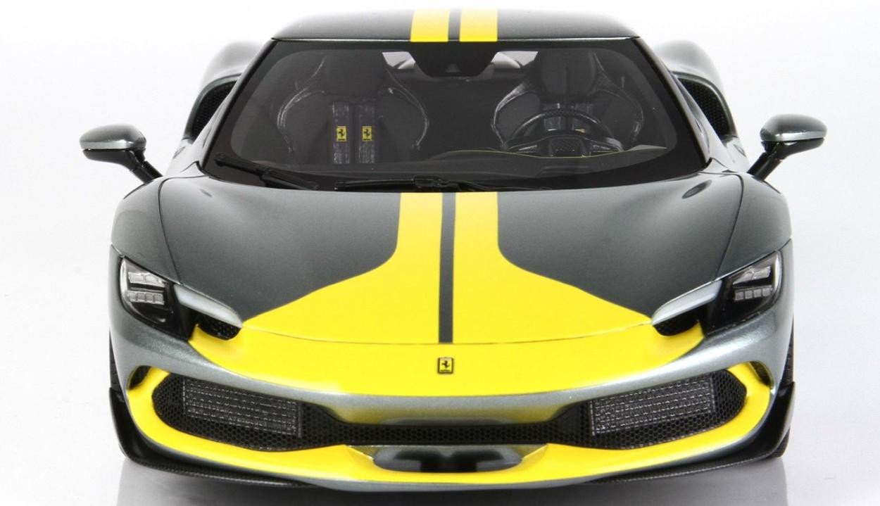 Karoserie modelu je nalakována do šedé Grigio Coburn doplněné o žluté pruhy v odstínu Giallo Modena.