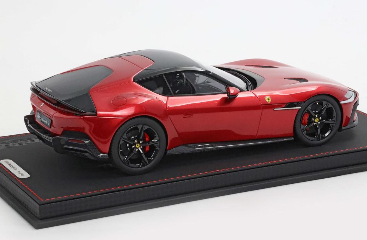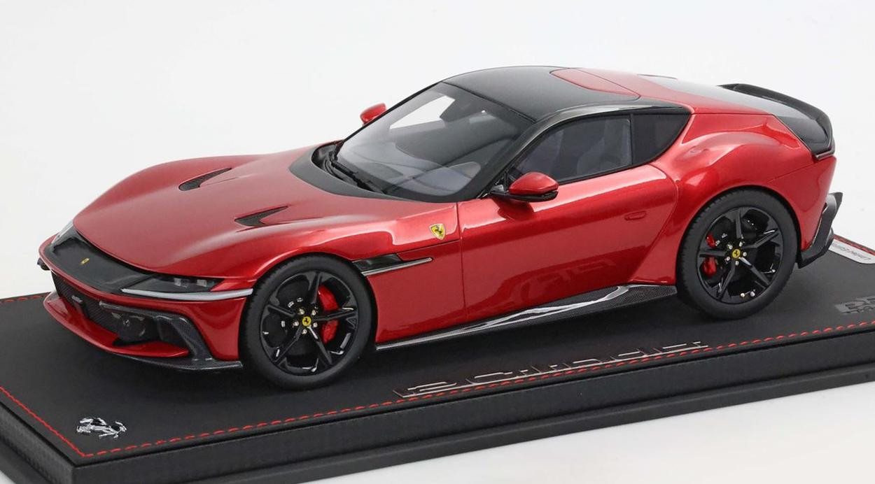 Popis modelu: Model je vyroben z pryskyřičné slitiny RESIN, při této technologii výrobce dosáhl maximální věrnosti modelu ku originálu za cenu nemožnosti cokoli otevřít. Model je dodáván přišroubován na podkladové desce a je lakován do barvy Rosso Imola black rims.