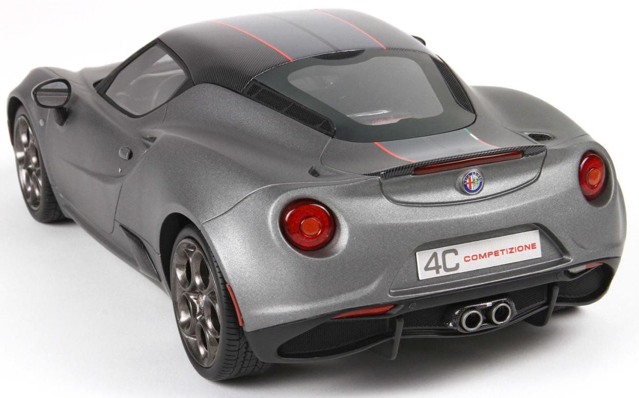 Nejexkluzivnější kupé Alfa Romeo 4C se jmenovalo „Competizione“. V této verzi bylo přidáno mnoho detailů: exkluzivní livrej inspirovaný světem závodů, střecha vyrobená výhradně z uhlíkových vláken, přední nárazník se dvěma bočními vstupy vzduchu zarovnanými se světlomety ve stejné barvě jako vůz a další vstupy vzduchu, které najdeme ve spodní části bočního výřezu. Zadní části dominuje dvojitý centrální titanový výfuk Akrapovič s funkcí duálního režimu a rámem z uhlíkových vláken. Na nejvyšší části najdeme mini spoiler, rovněž z uhlíkových vláken. Interiér se vyznačuje číslovaným štítkem na centrálním tunelu a hliníkovou vložkou s vyrytým nápisem „4c Competizione“.